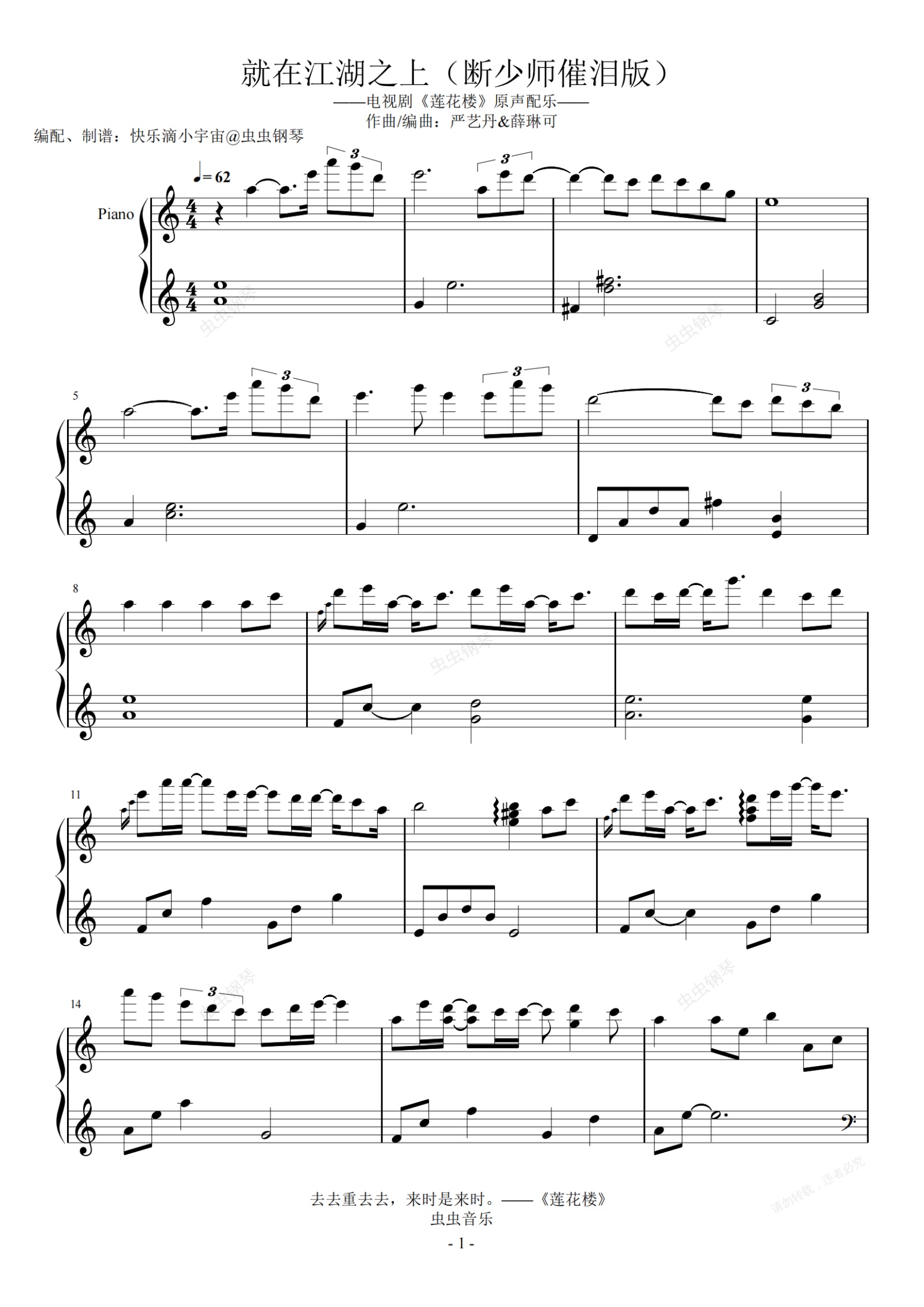 钢琴谱:就在江湖之上(刘宇宁)—电视剧《莲花楼》主题曲(断少师剑催泪版)