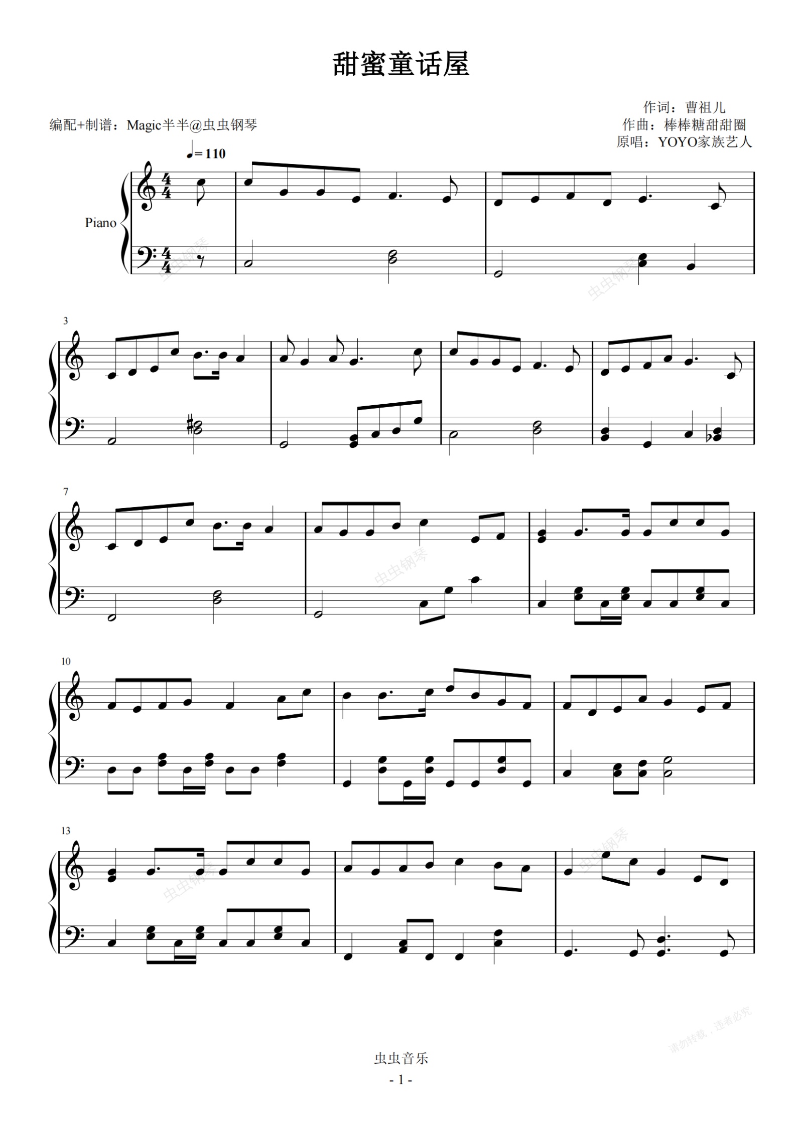 钢琴谱:甜蜜童话屋(C调完整版)