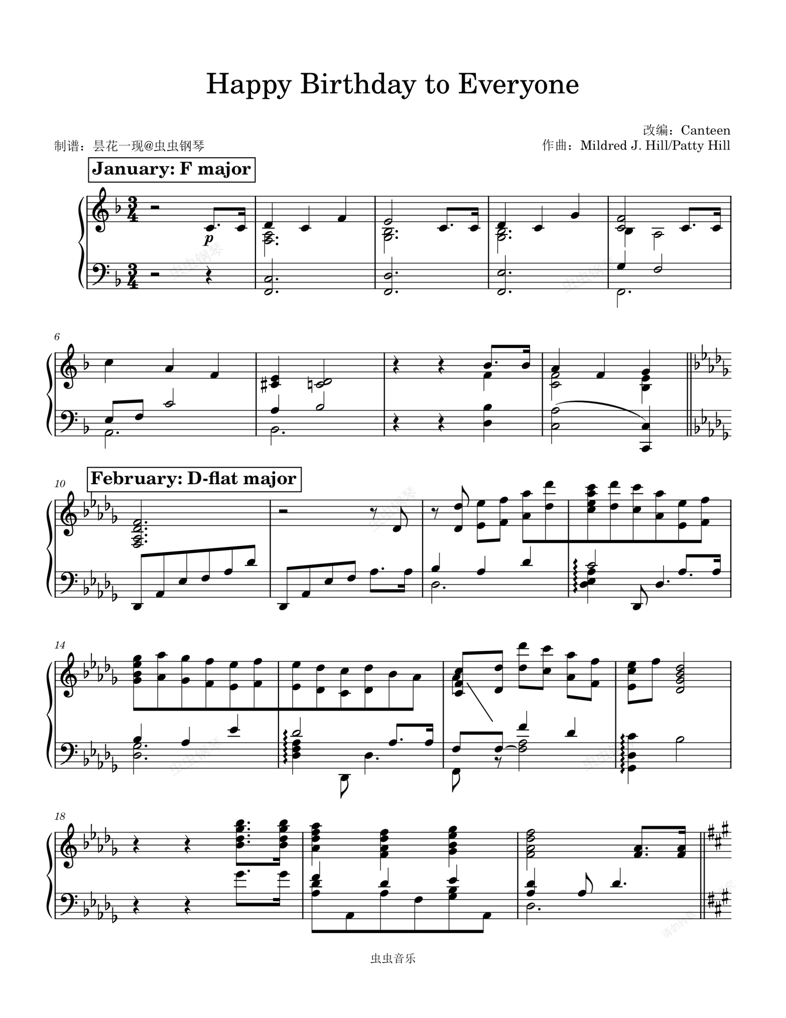钢琴谱:生日快乐 Canteen改编(Variations in all 12 major keys)