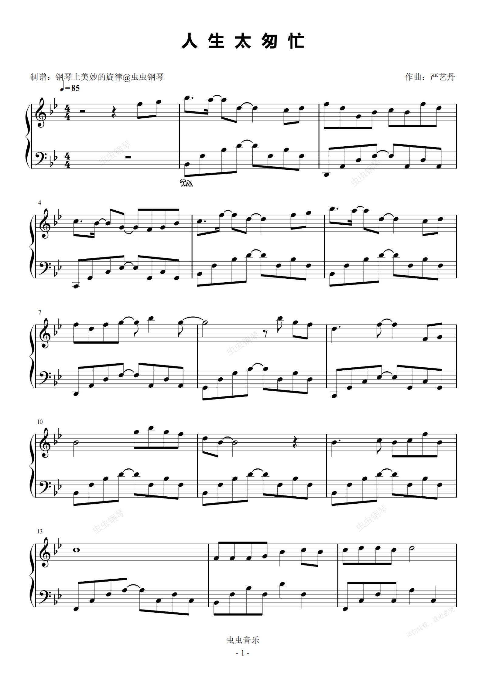 钢琴谱:人生太匆忙 原调简易版 严艺丹  莲花楼
