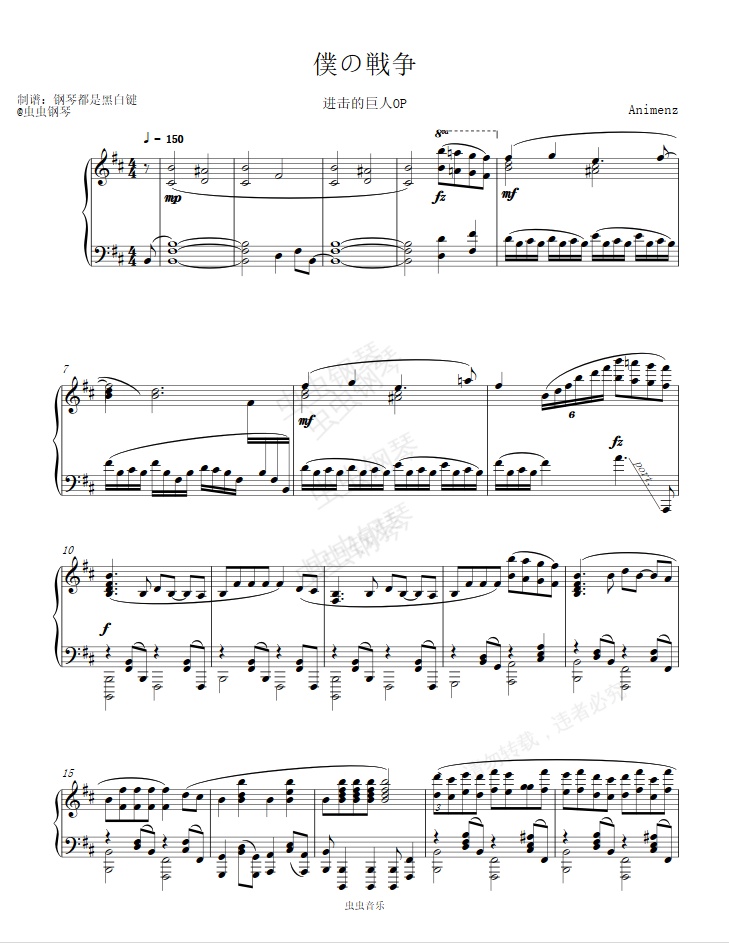 钢琴谱:【Animenz】僕の戦争 -Boku no Sensou(《进击的巨人 最终季》OP 【爆燃钢琴独奏】