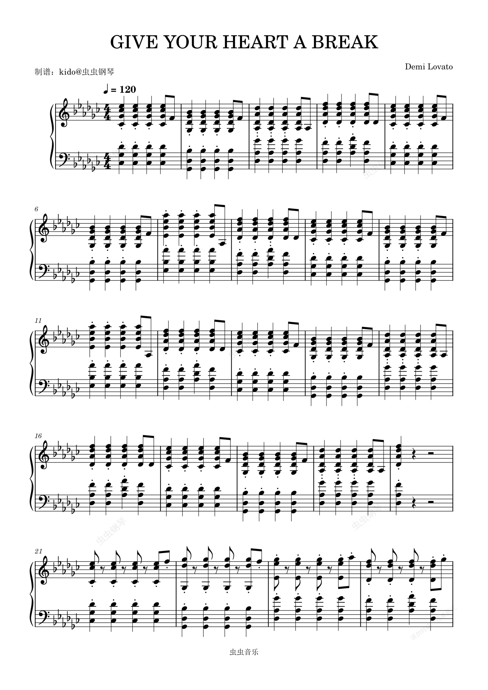 钢琴谱:GIVE YOUR HEART A BREAK - Demi Lovato