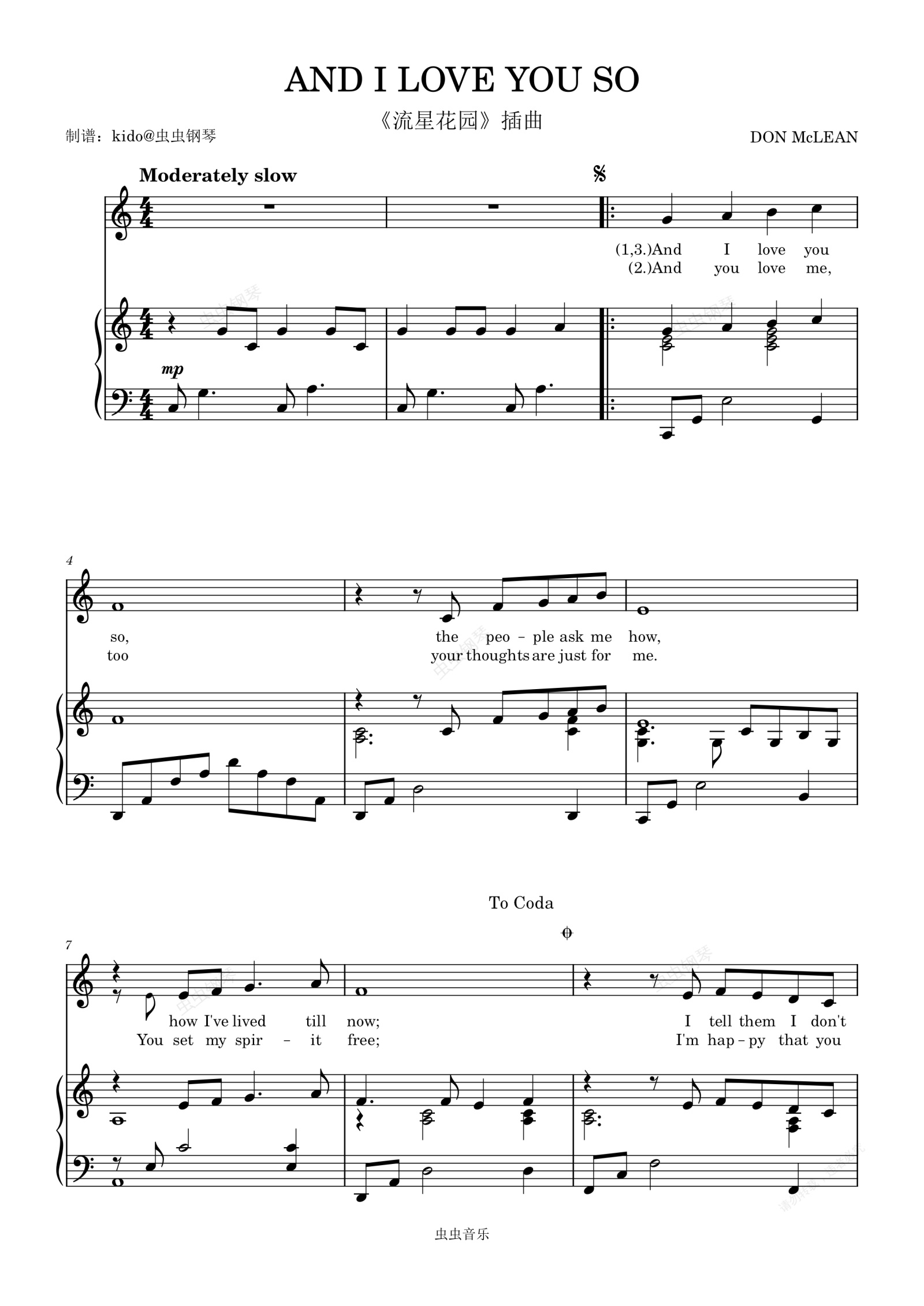 钢琴谱:AND I LOVE YOU SO《流星花园》插曲