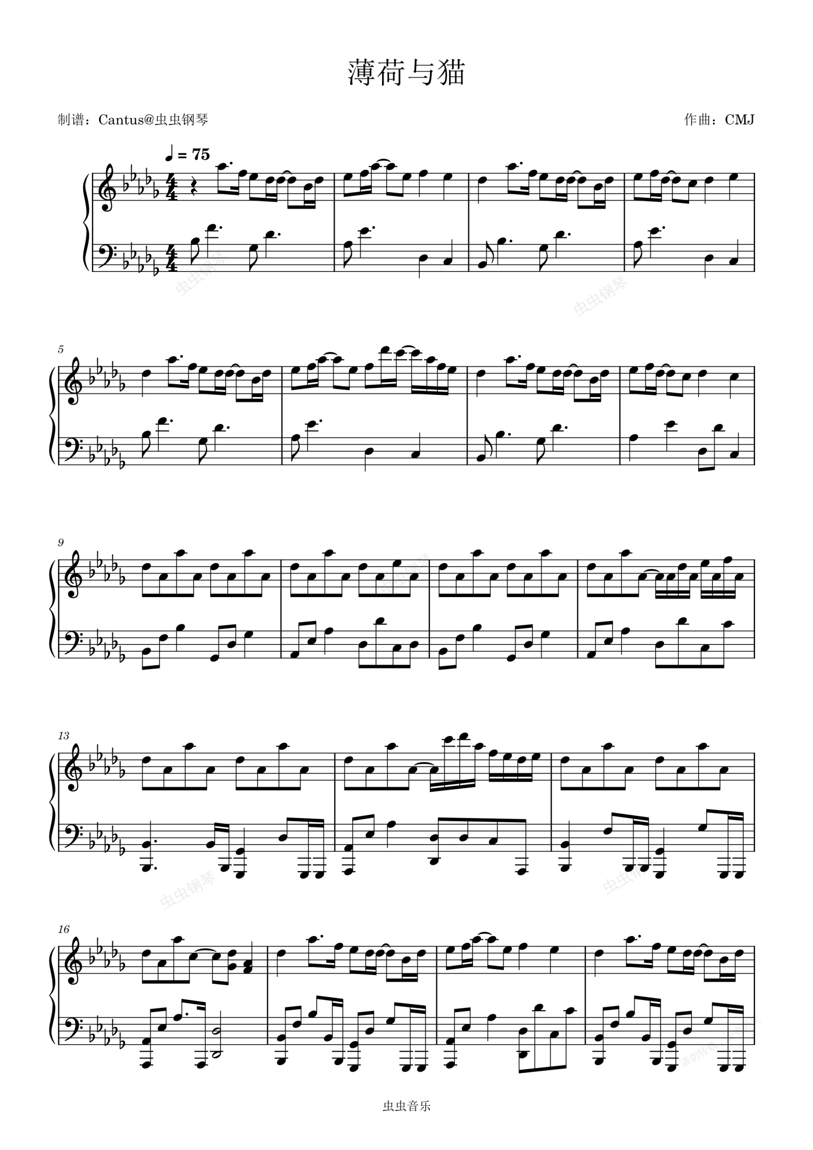 钢琴谱:薄荷与猫