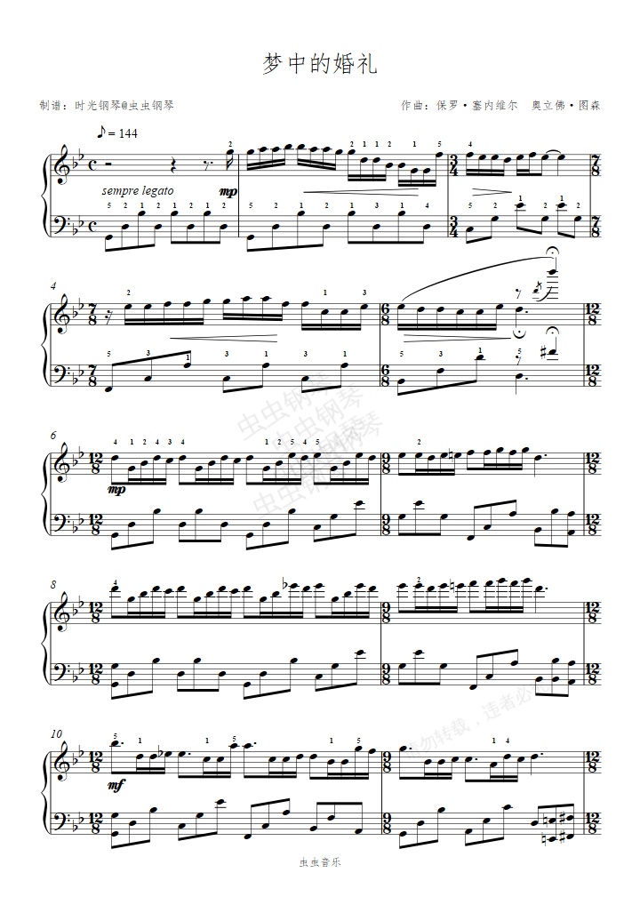 钢琴谱:梦中的婚礼(降B原调+指法版)