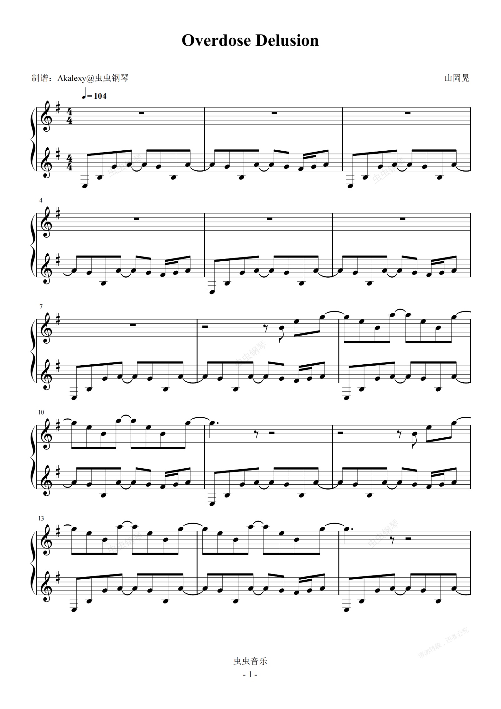 钢琴谱:【寂静岭2】Overdose Delusion