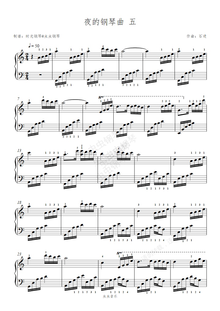 钢琴谱:夜的钢琴曲5(C调+指法版)