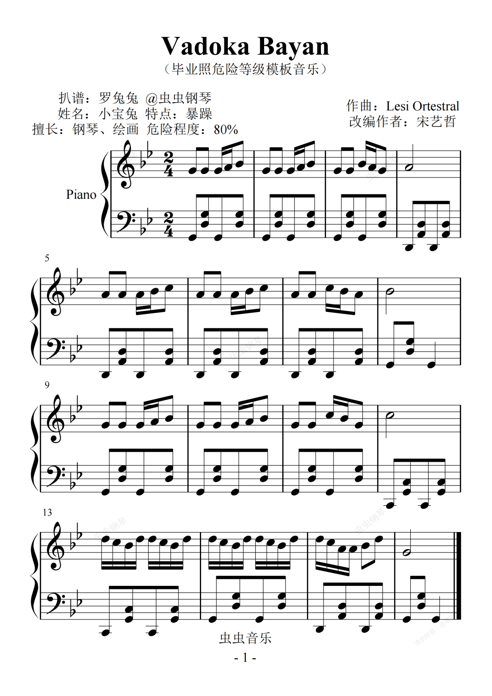 钢琴谱:Vadoka Bayan(毕业照危险等级模板音乐)