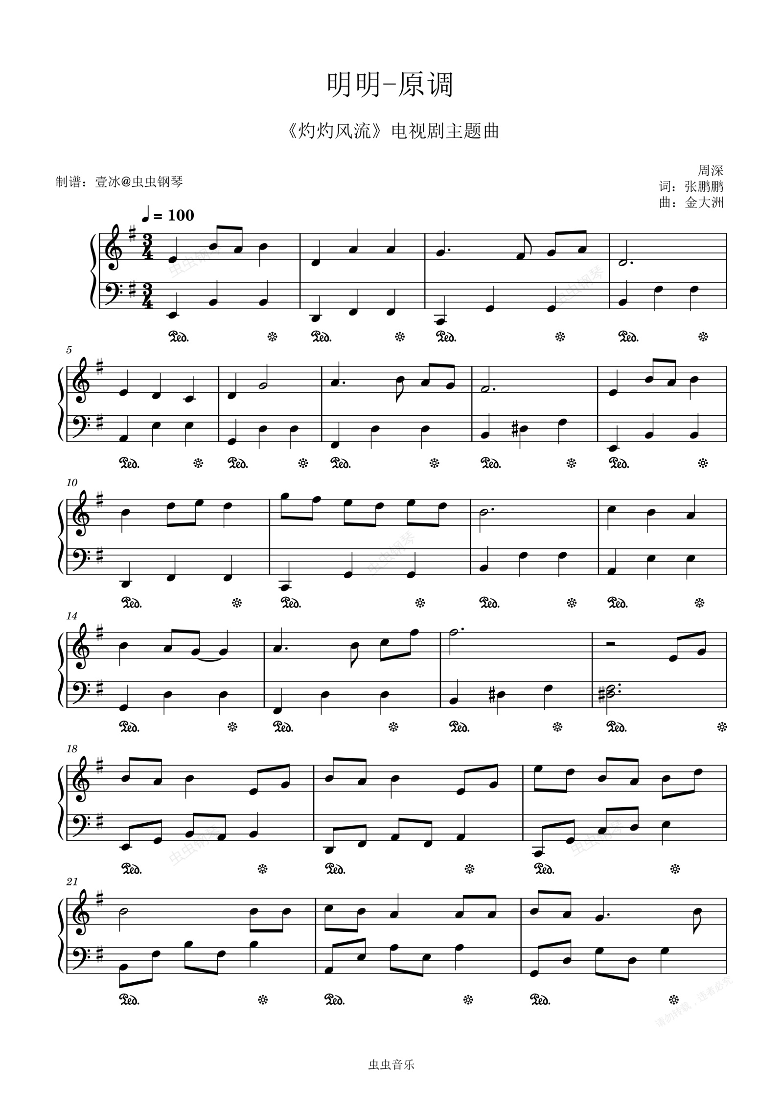 钢琴谱:明明//《灼灼风流》电视剧主题曲 - 原调