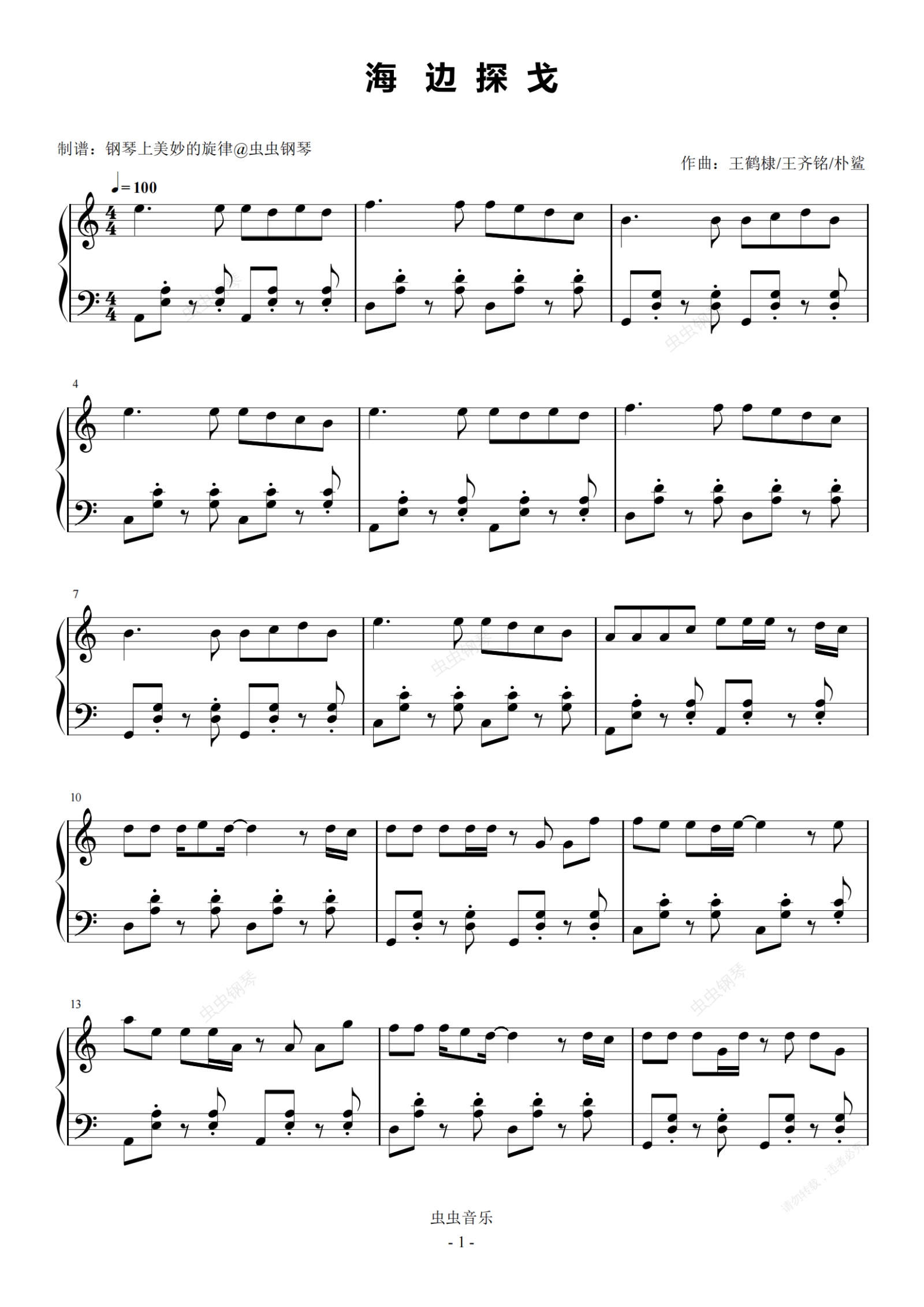 钢琴谱:海边探戈  C调简易版本  王鹤棣/王齐铭WatchMe/朴鲨