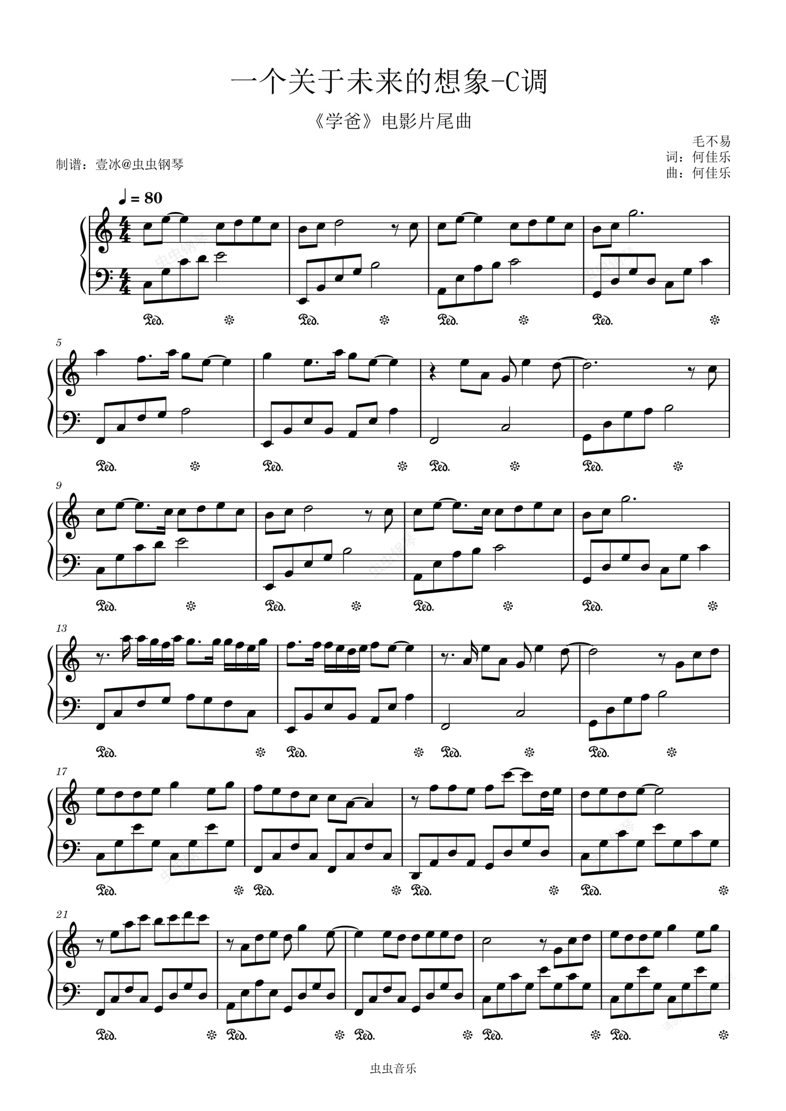 钢琴谱:一个关于未来的想象 (《学爸》电影片尾曲) - C调