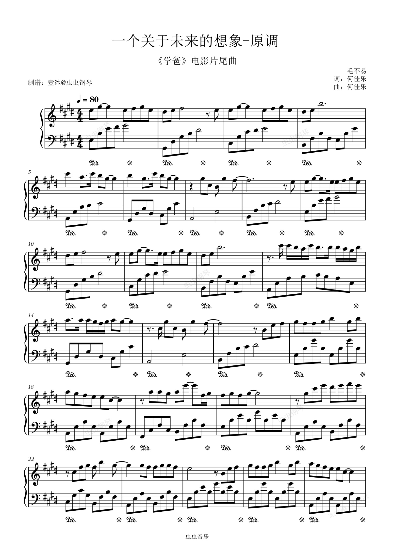 钢琴谱:一个关于未来的想象 (《学爸》电影片尾曲) - 原调