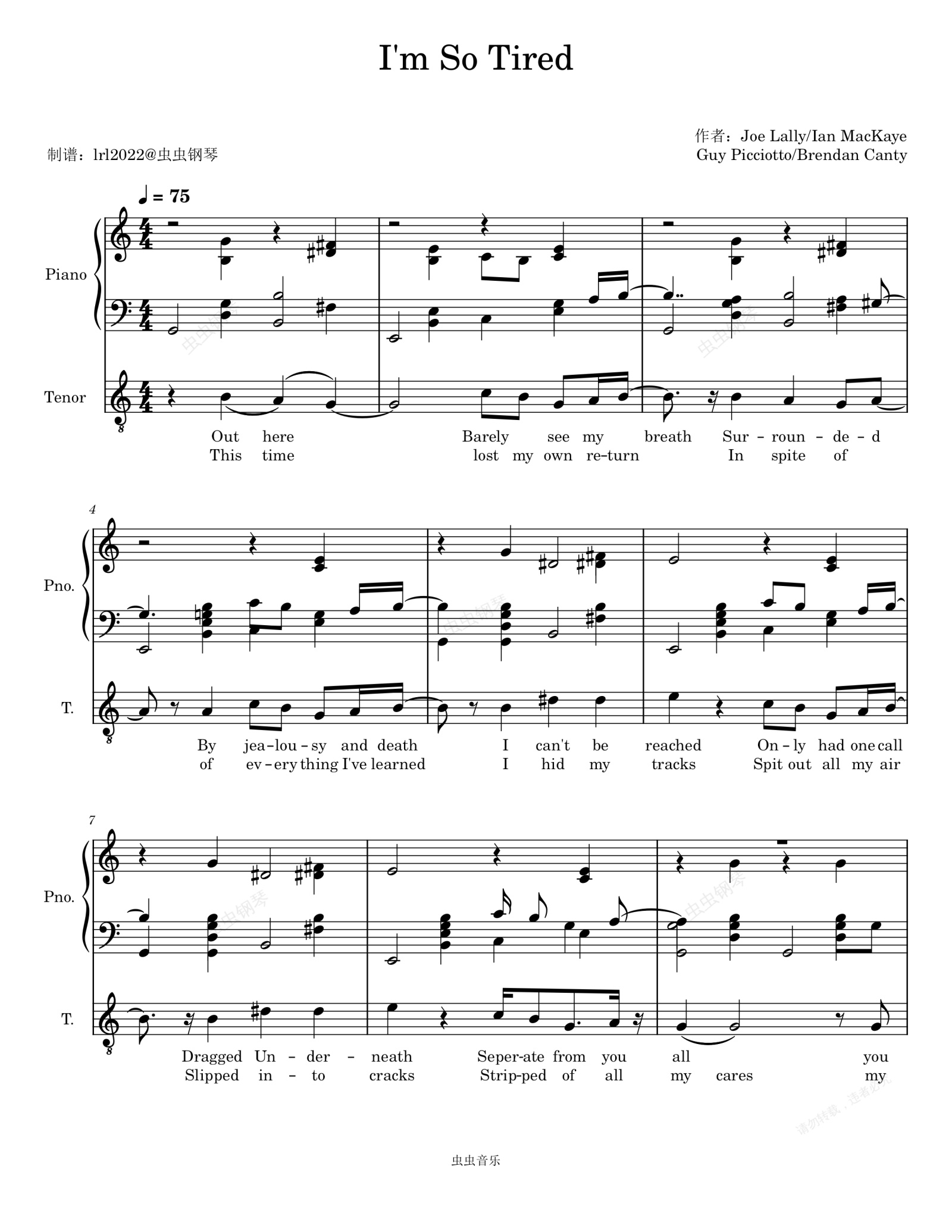 钢琴谱:I'm So Tired - Fugazi - 钢琴伴奏弹唱加声乐谱