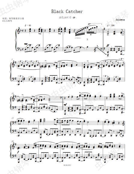 钢琴谱:【Animenz】Black Catcher-黑色四叶草 OP【爆燃钢琴独奏】