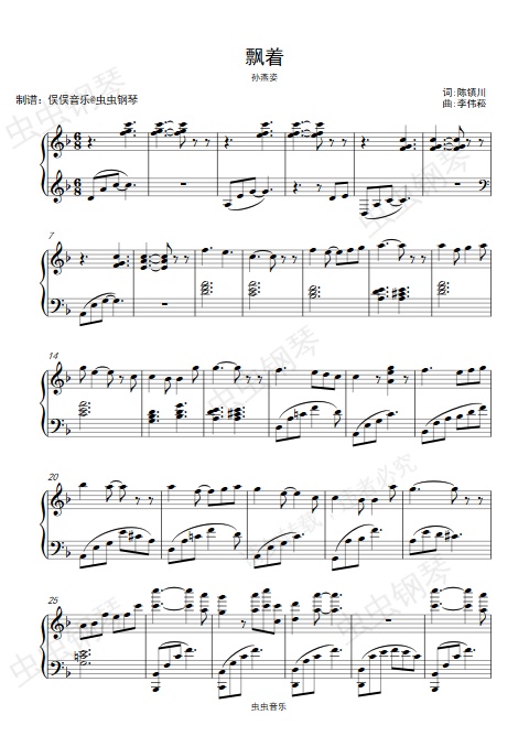 钢琴谱:孙燕姿 - 飘着(简易版)