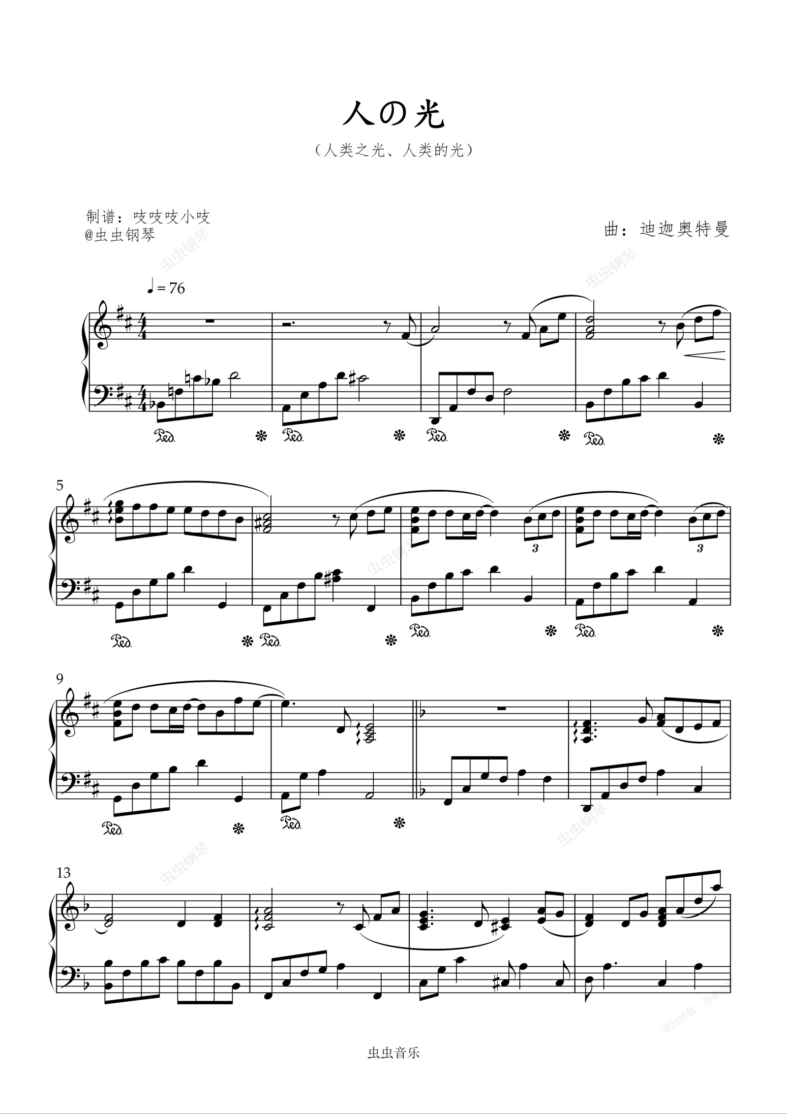 钢琴谱:人の光  迪迦奥特曼插曲(人类之光,人类的光)再见了,奥比克  吱吱编配