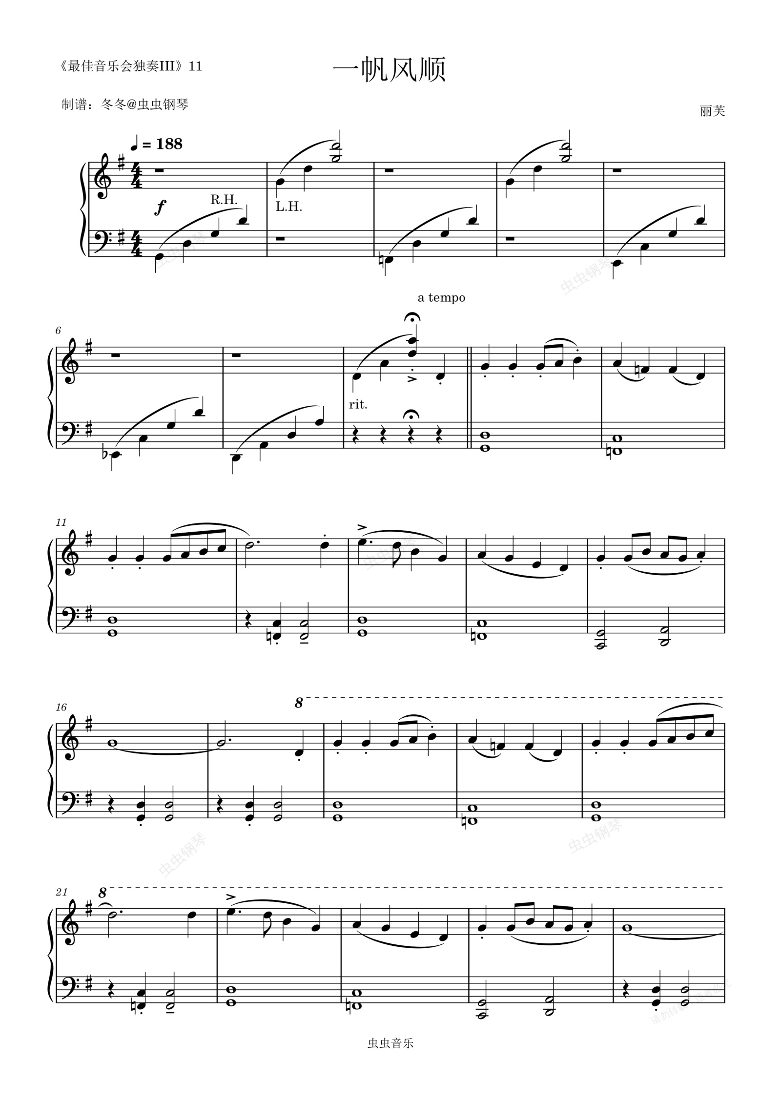 钢琴谱:一帆风顺