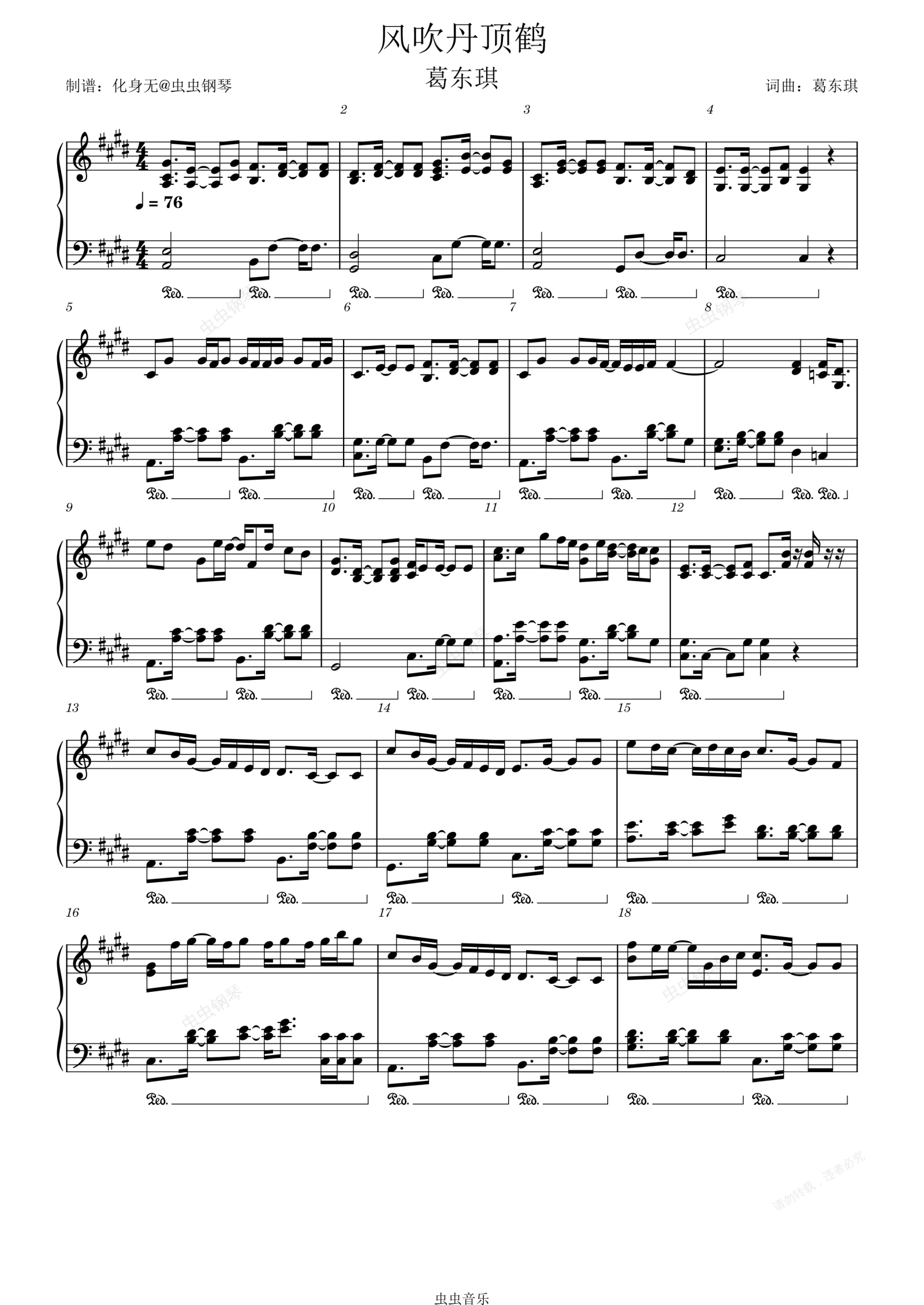 钢琴谱:风吹丹顶鹤 化身无编配 原调独奏版
