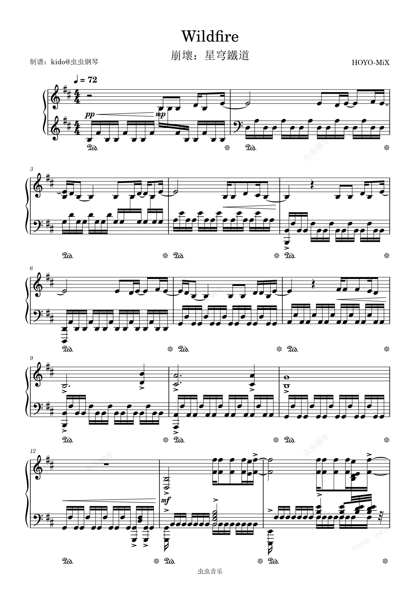钢琴谱:Wildfire 崩壞:星穹鐵道