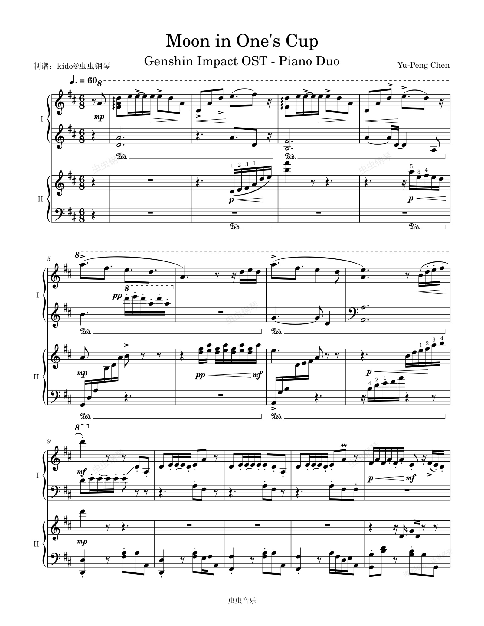 钢琴谱:Moon in One's Cup 双钢琴改编(杯中明月)