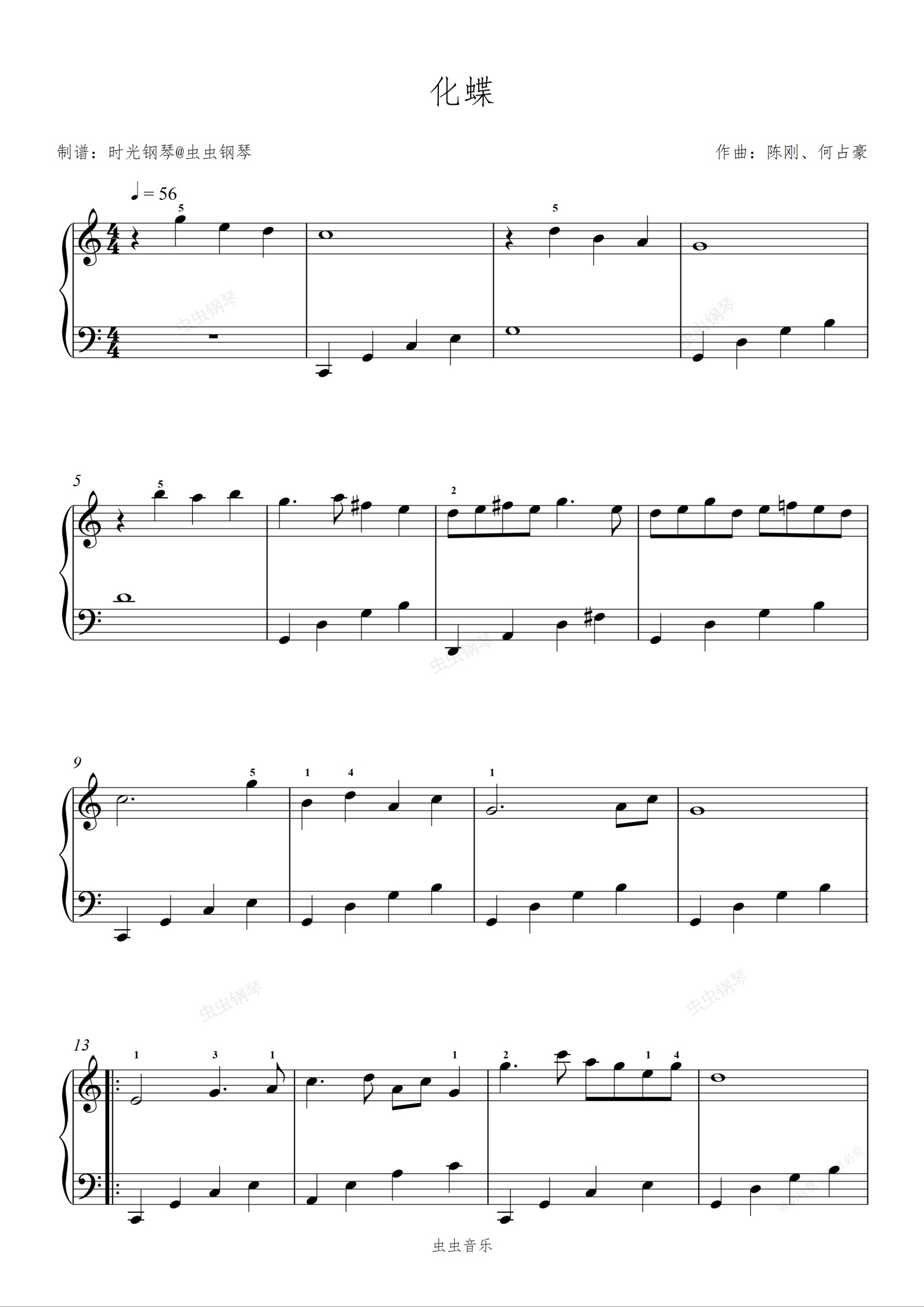 钢琴谱:化蝶(C调+指法版)彭丽媛