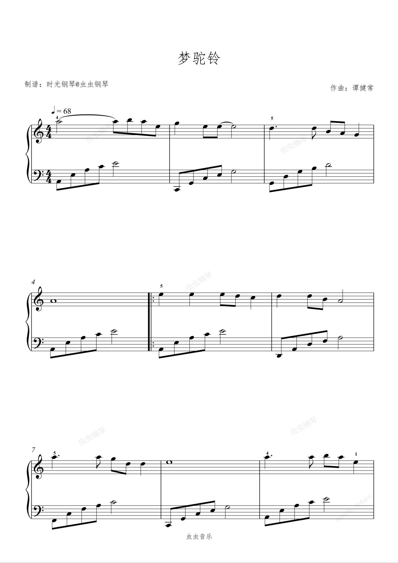 钢琴谱:梦驼铃(C调+指法版)费玉清