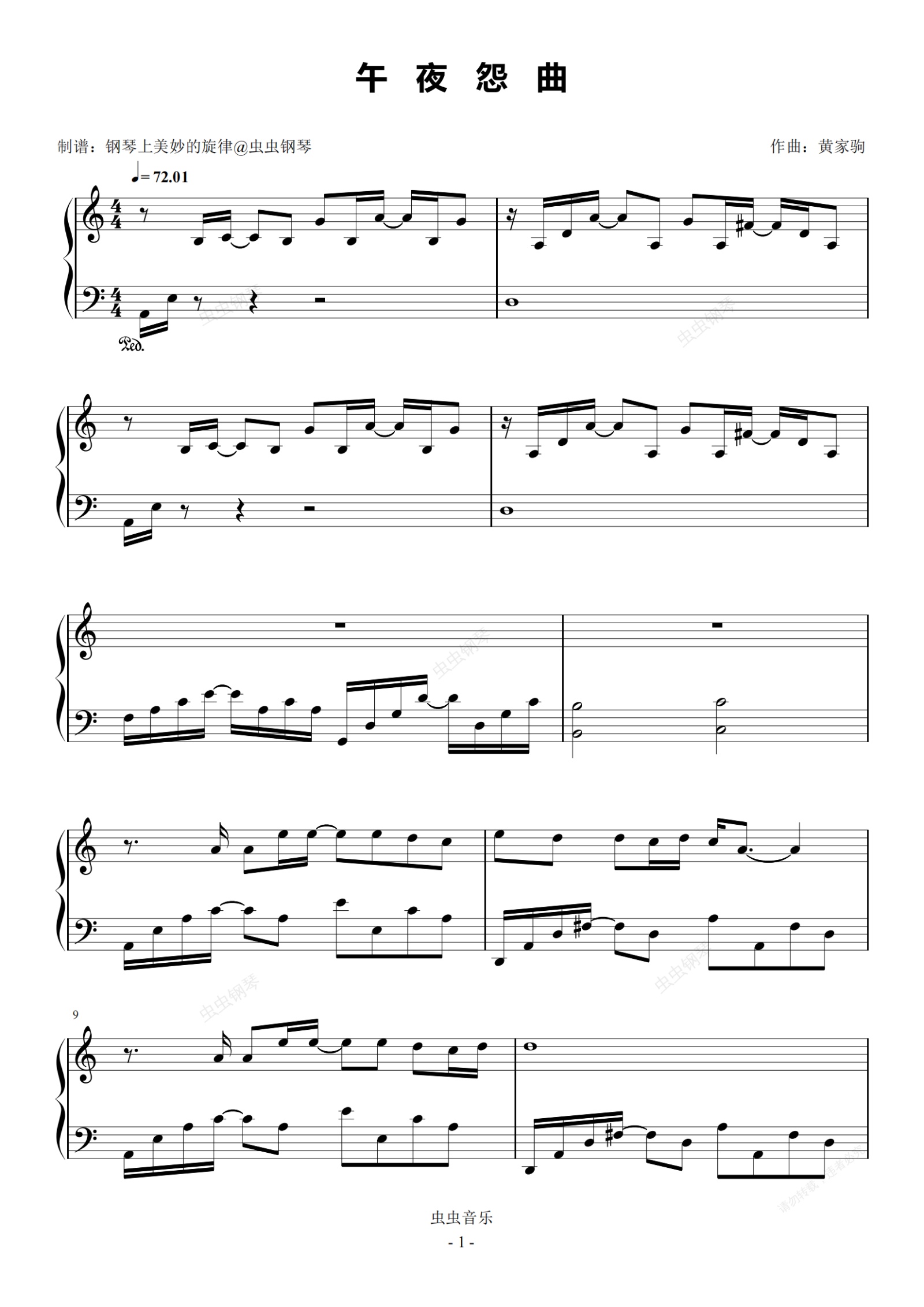钢琴谱:午夜怨曲 C调简易版 黄家驹beyond 经典流行