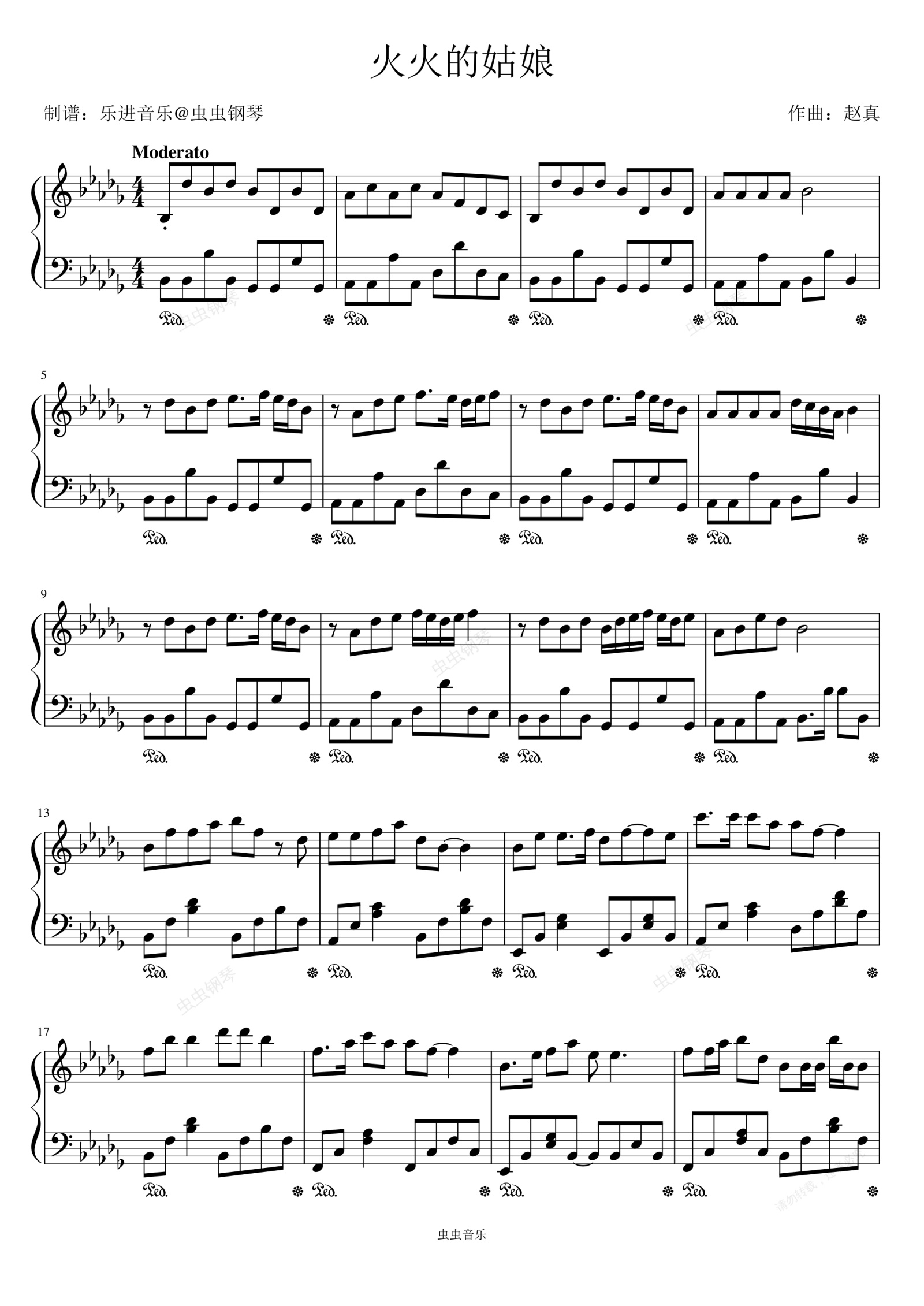 钢琴谱:《火火的姑娘》东方红艳
