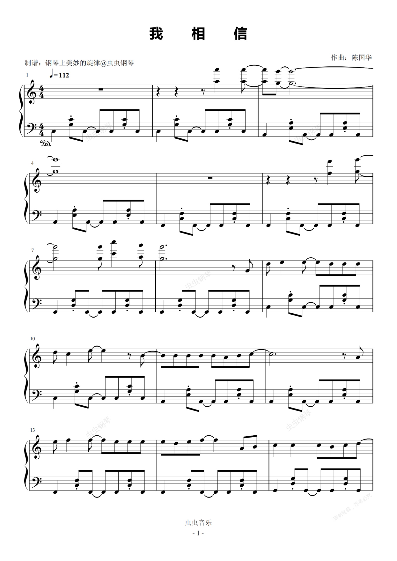 钢琴谱:我相信 C调简易版 杨培安 流行经典