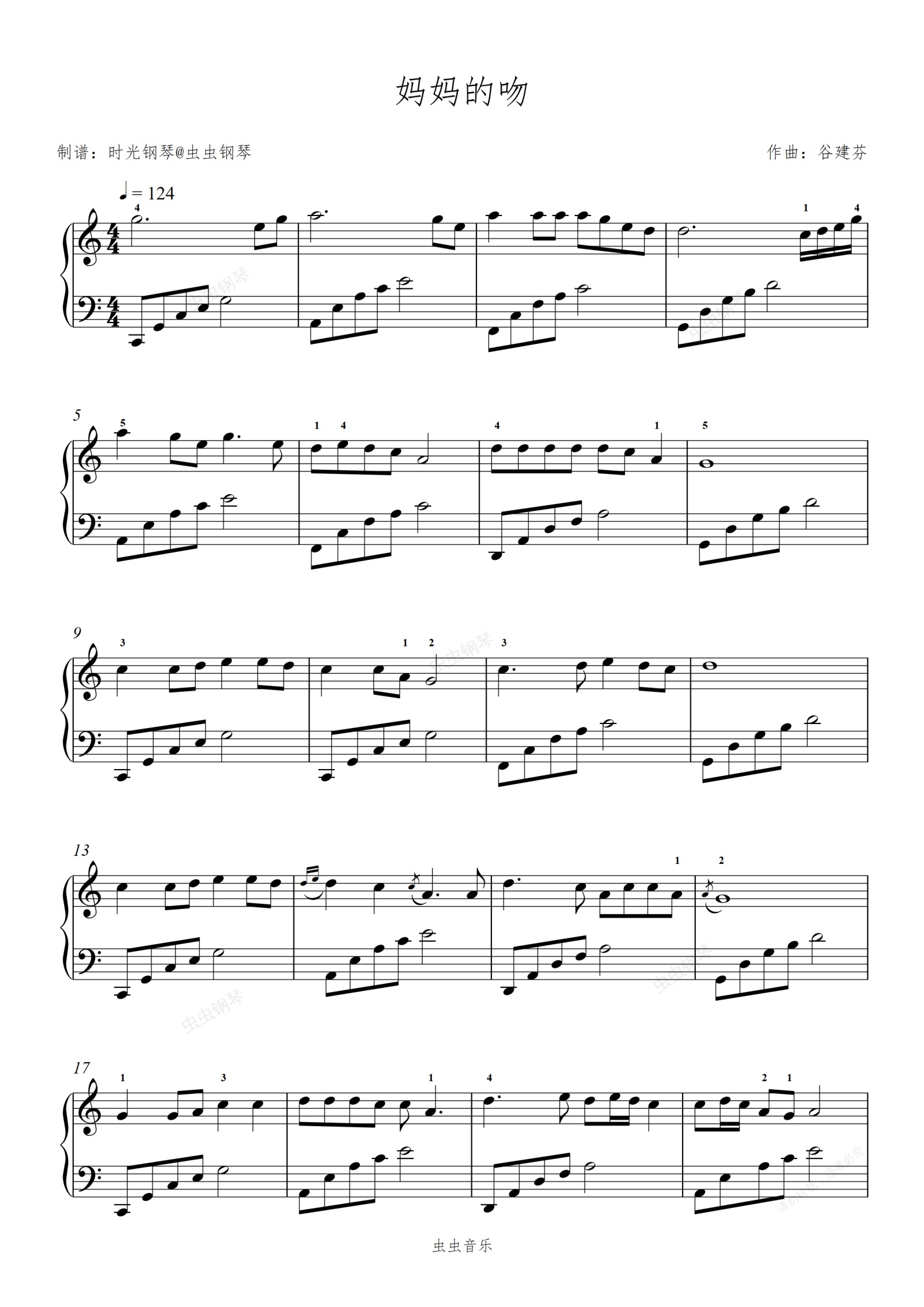 钢琴谱:妈妈的吻(C调+指法版)程琳