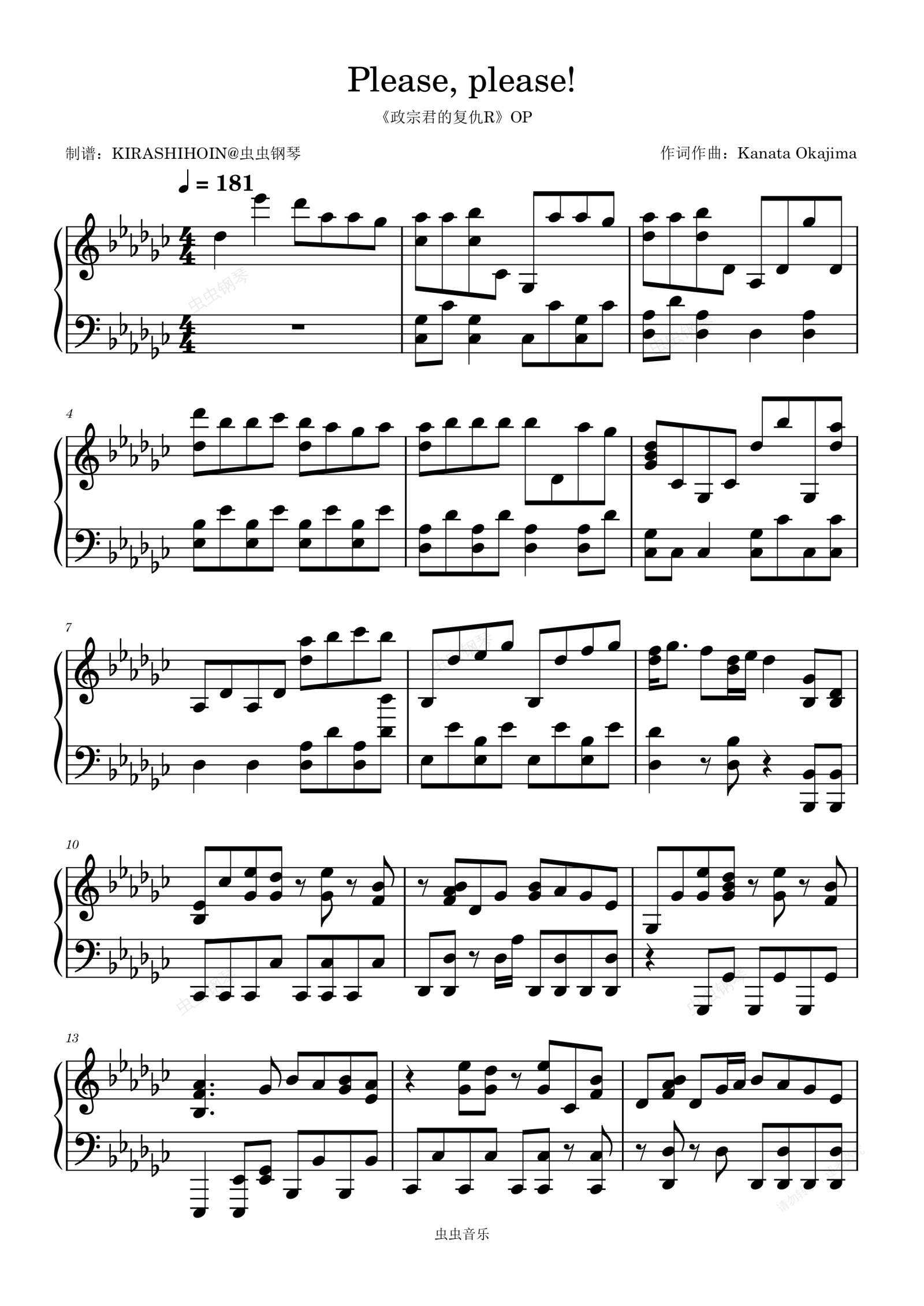 钢琴谱:Please, please!(《政宗君的复仇R》OP/片头曲)- 大桥彩香