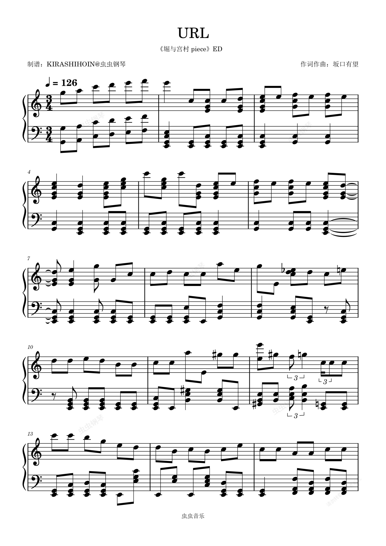 钢琴谱:URL(《堀与宫村 piece》ED/片尾曲)- 坂口有望