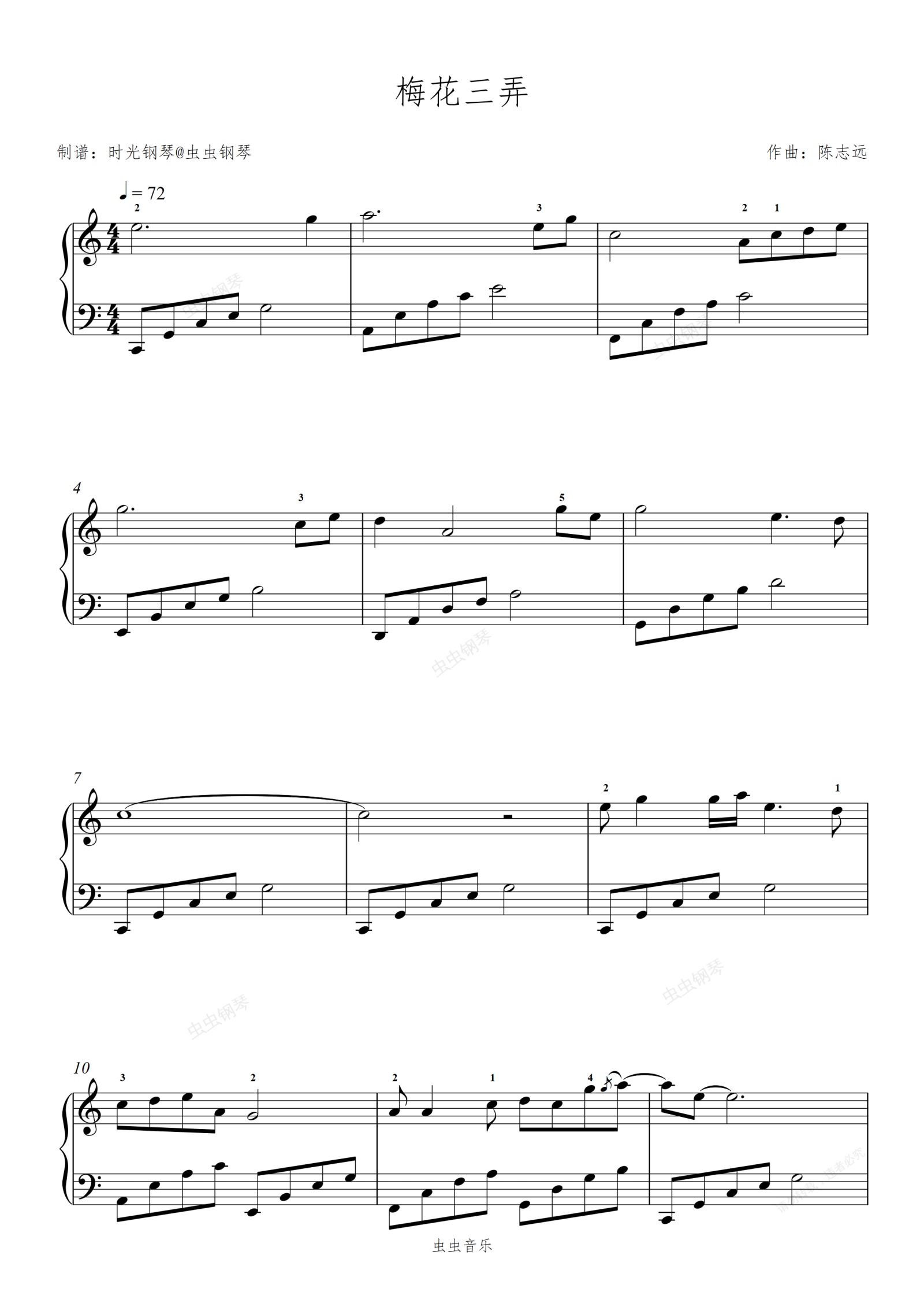 钢琴谱:梅花三弄(C调+指法版)姜育恒