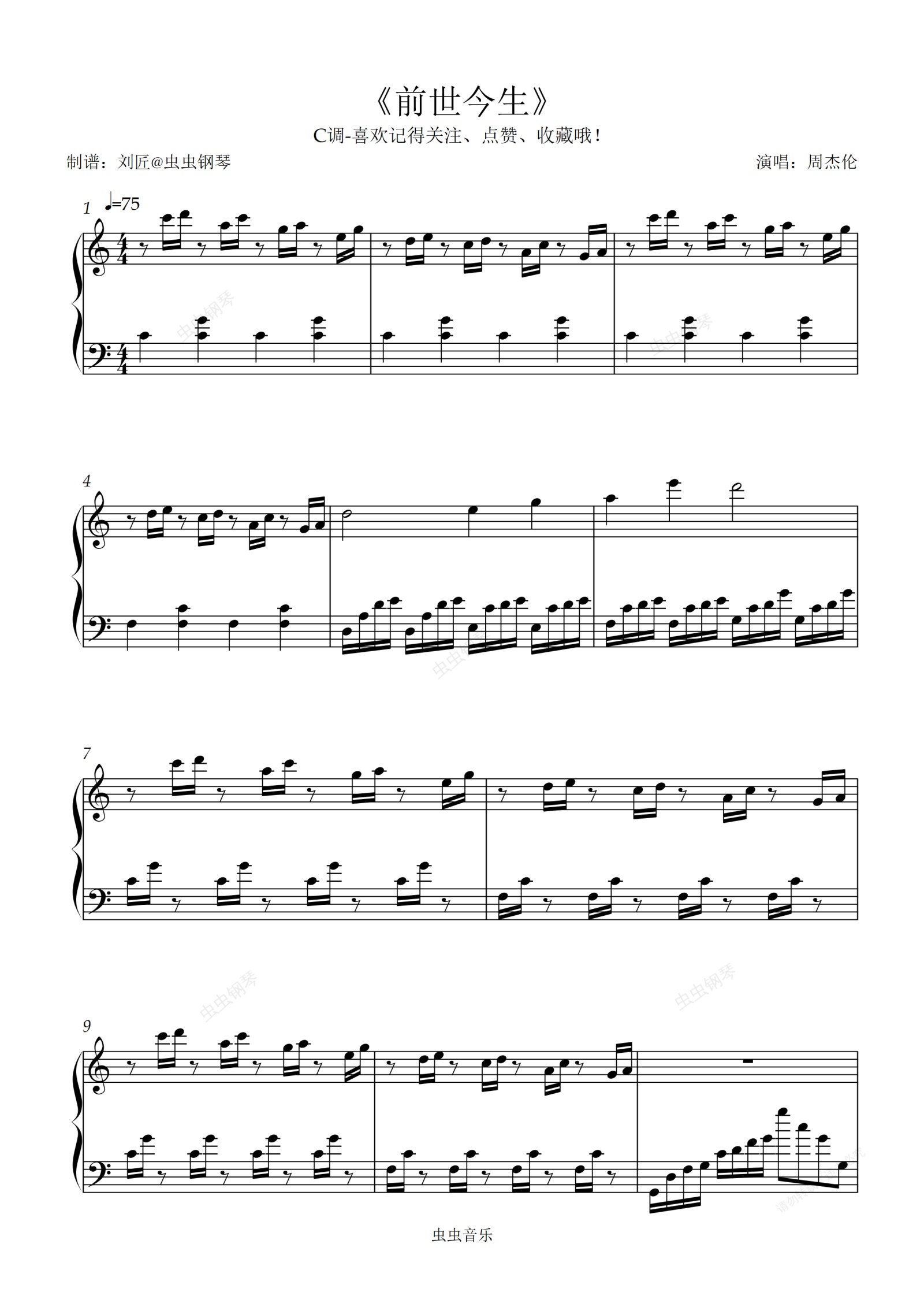 钢琴谱:【易上手】《前世今生》-刘匠编配-C调