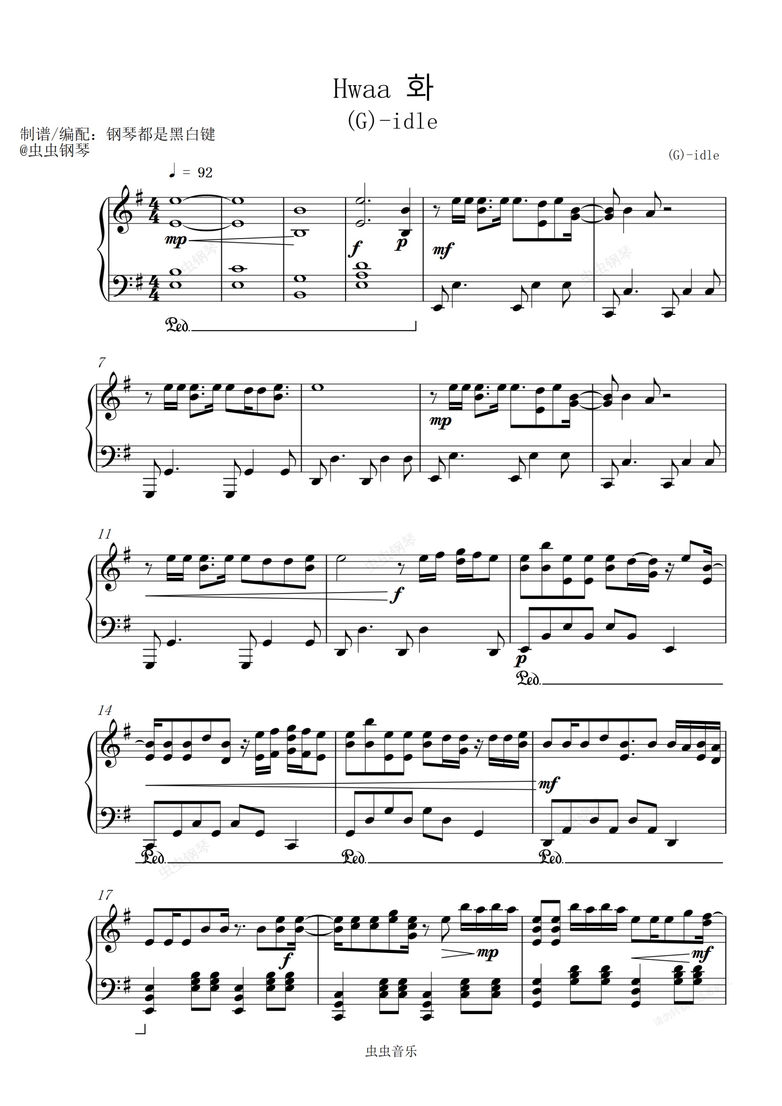 钢琴谱:화(火花)HWAA - (G)I-DLE ((钢琴演奏版)