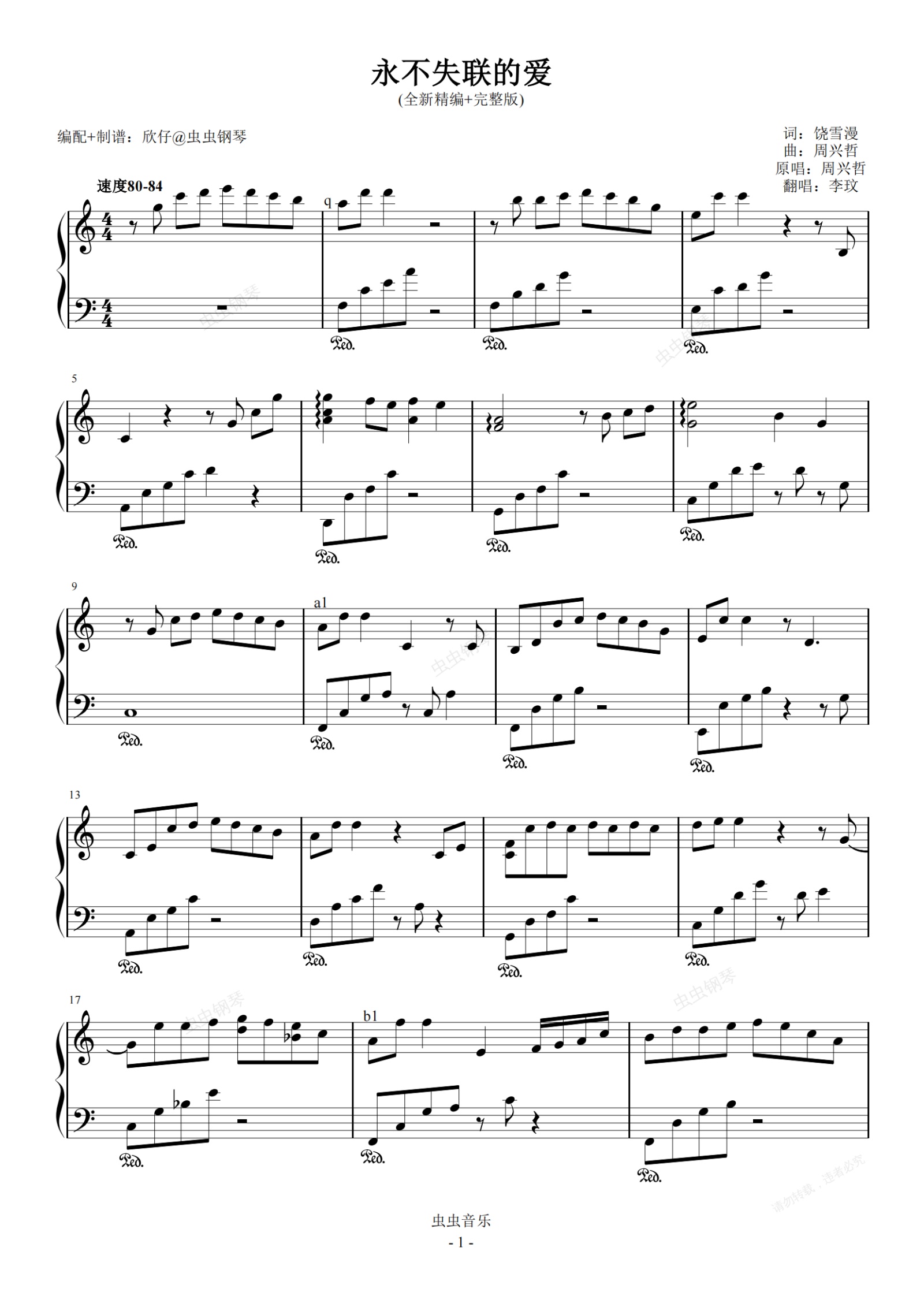 钢琴谱:李玟-C《永不失联的爱》(全新精编+完整版)