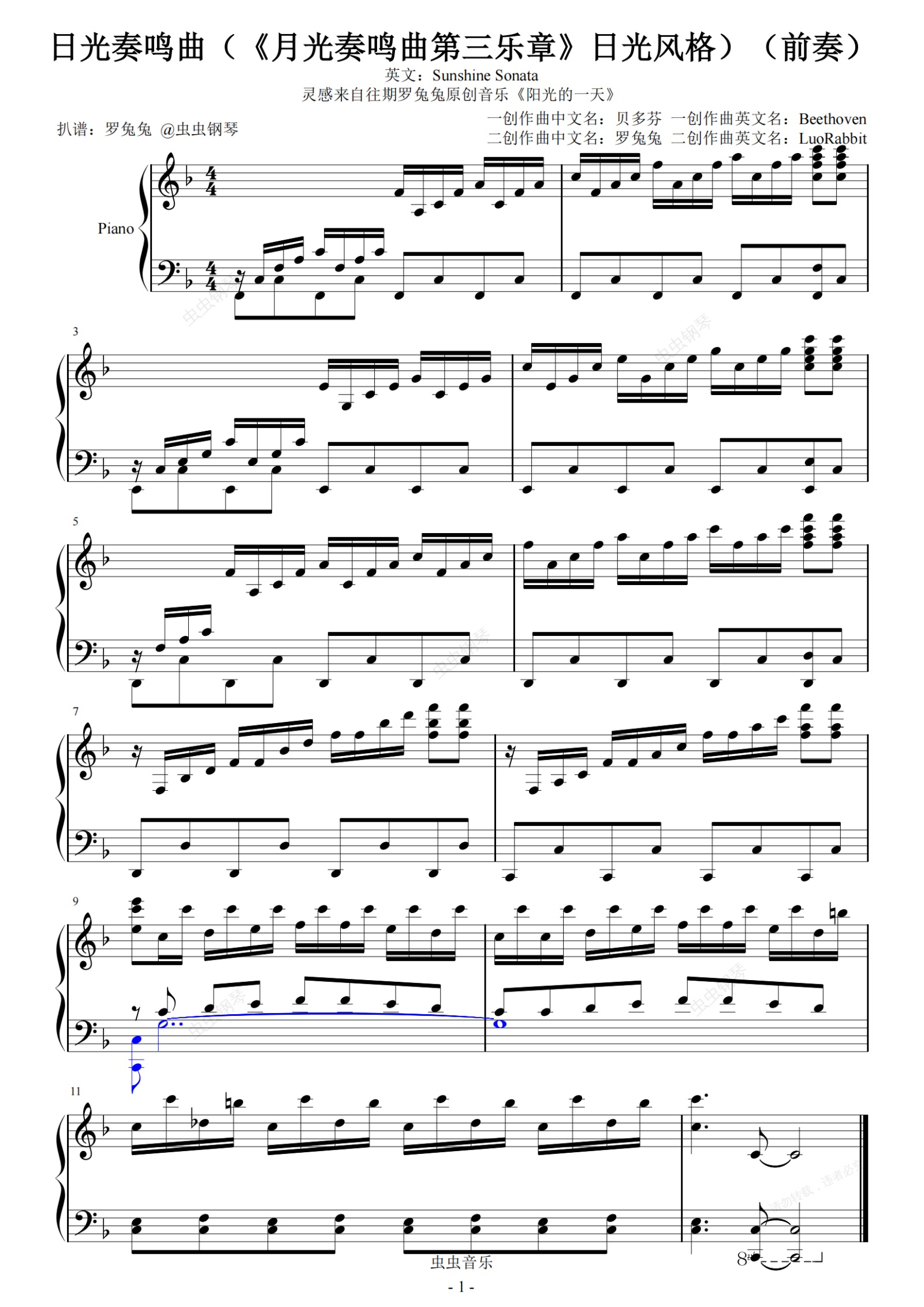 钢琴谱:日光奏鸣曲(《月光奏鸣曲第三乐章》日光风格)(前奏)
