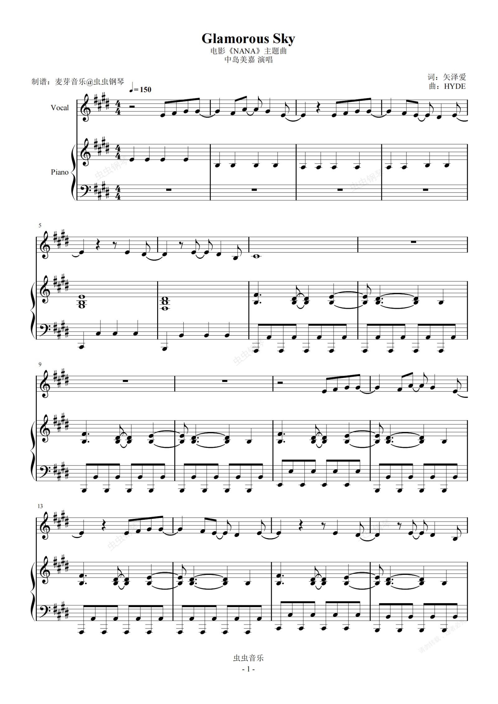 钢琴谱:Glamorous Sky 原调弹唱版