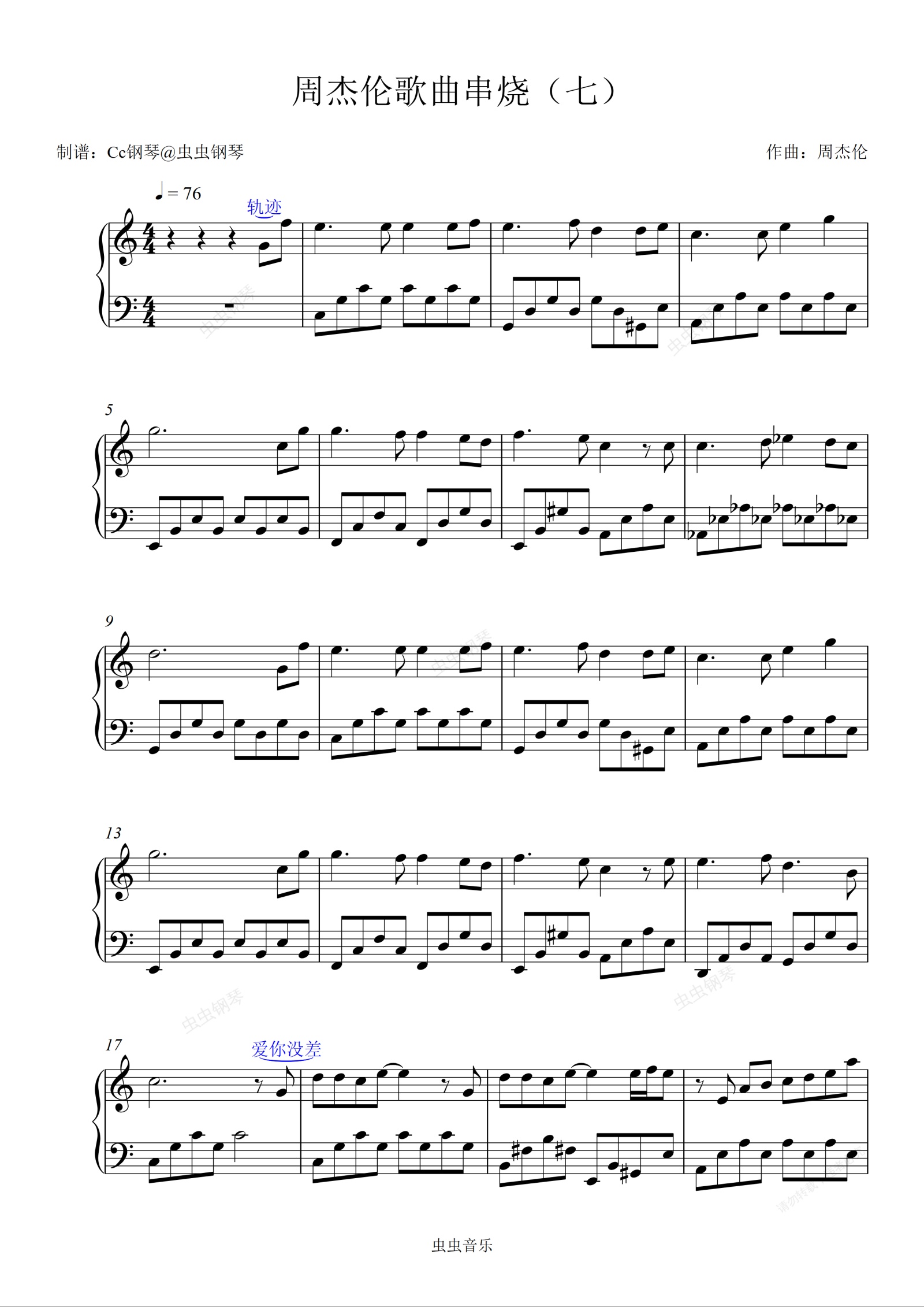 钢琴谱:周杰伦歌曲串烧(七)C调 好听易上手