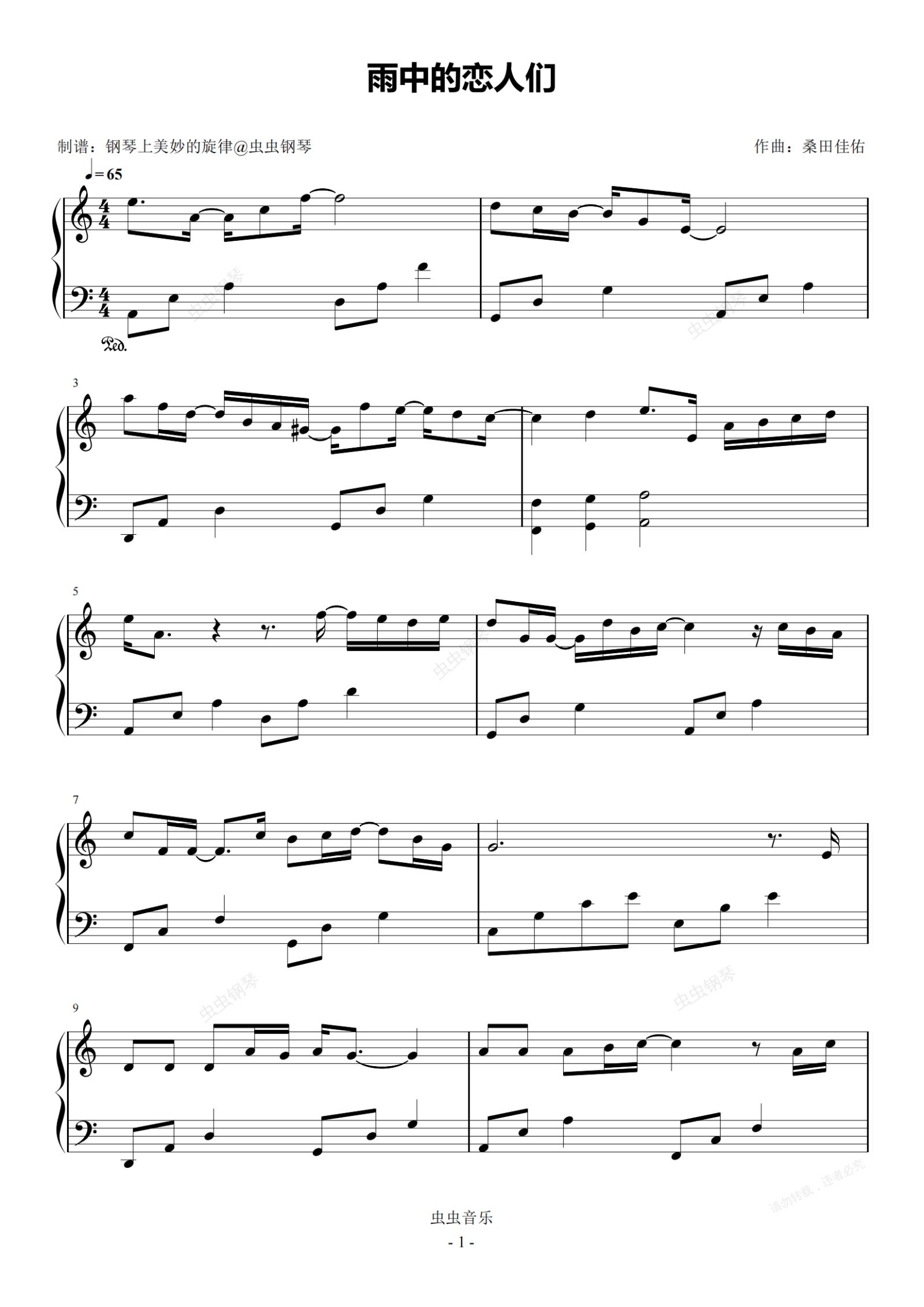 钢琴谱:雨中的恋人们 C调简易版 黄凯芹 流行经典
