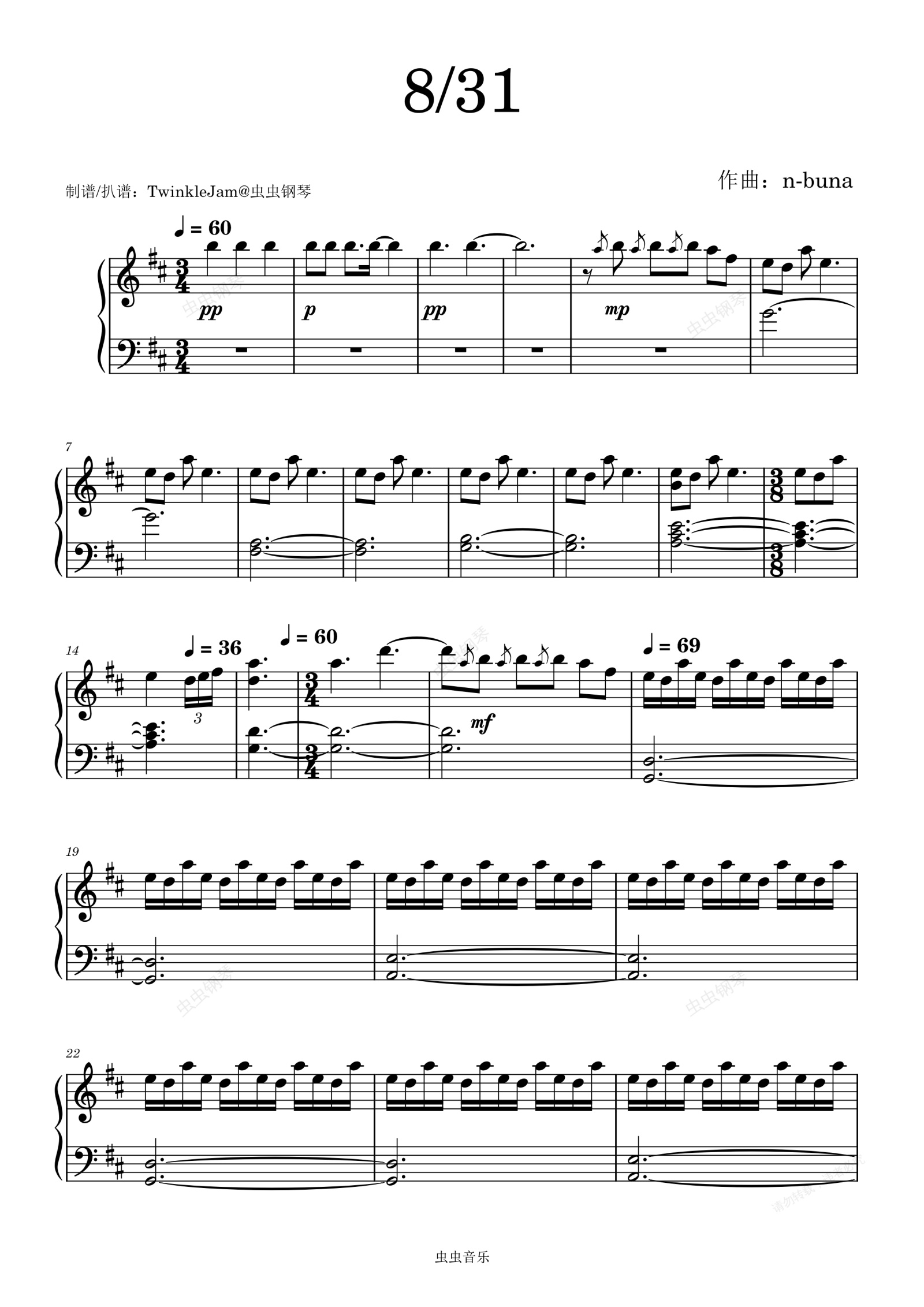 钢琴谱:ヨルシカ - 8/31