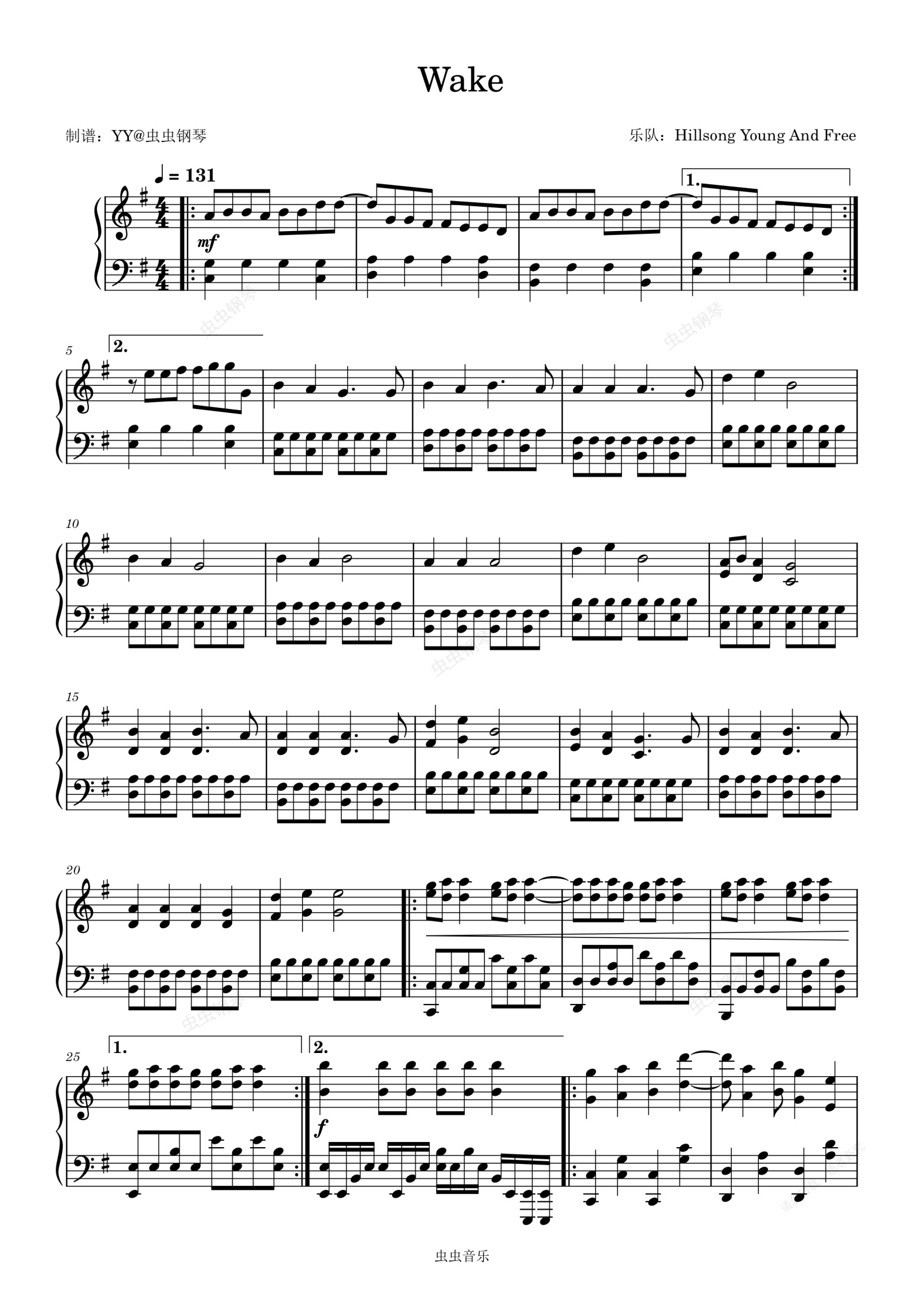 钢琴谱:Wake困难多声部版