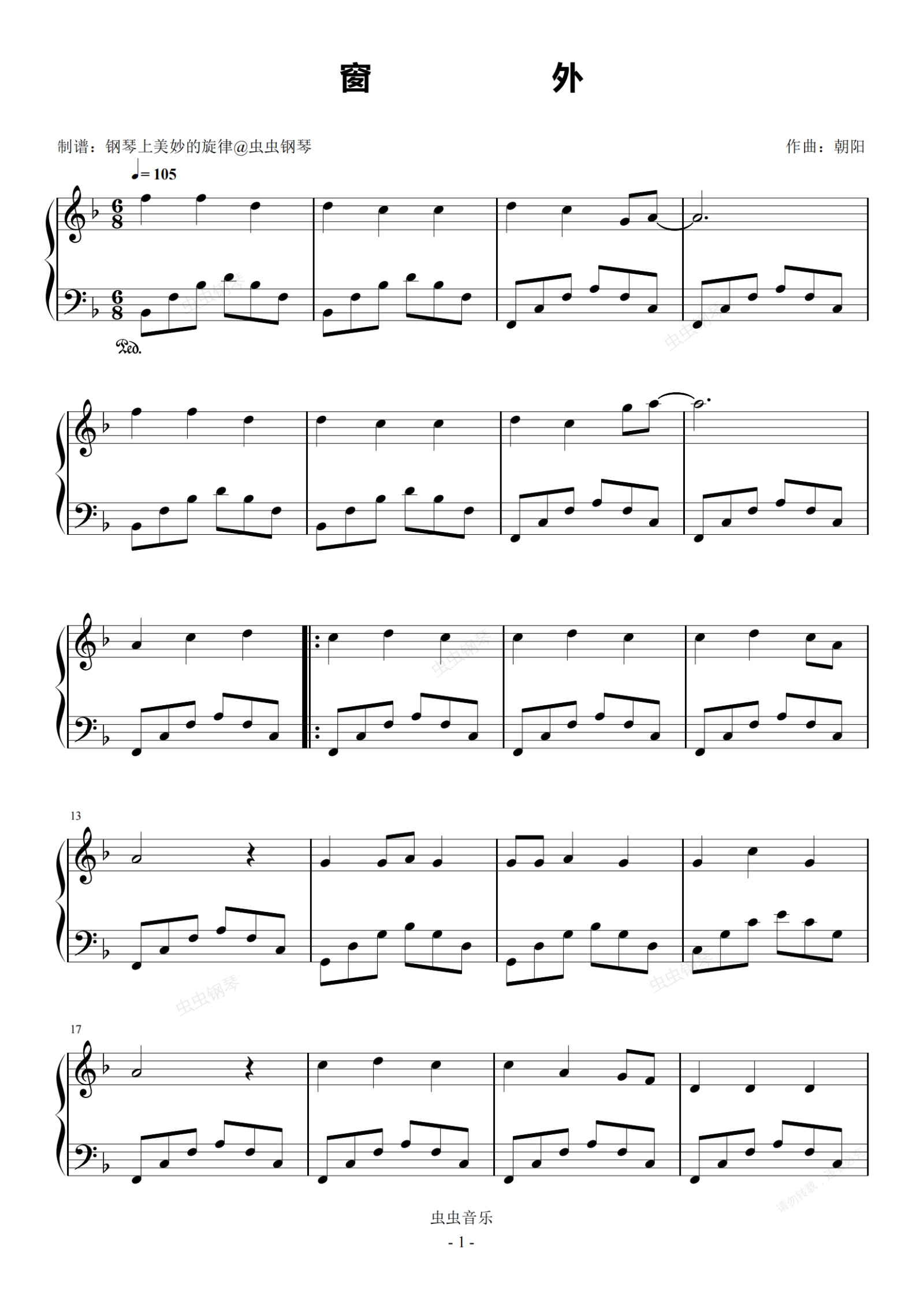 钢琴谱:窗外 简易版本 李琛 经典流行
