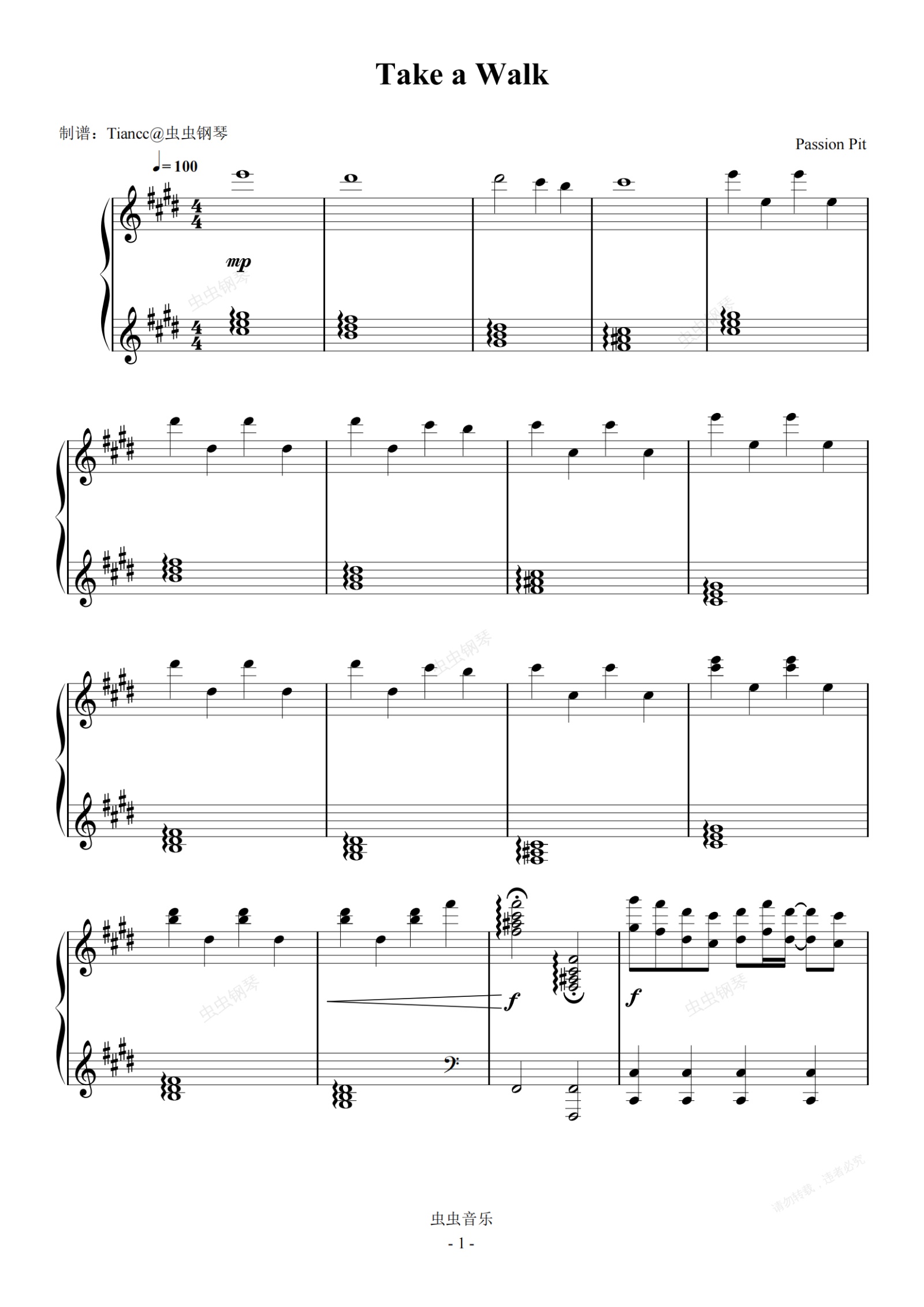 钢琴谱:《Take a Walk》这曲子很多人喜欢?前奏还是很柔的