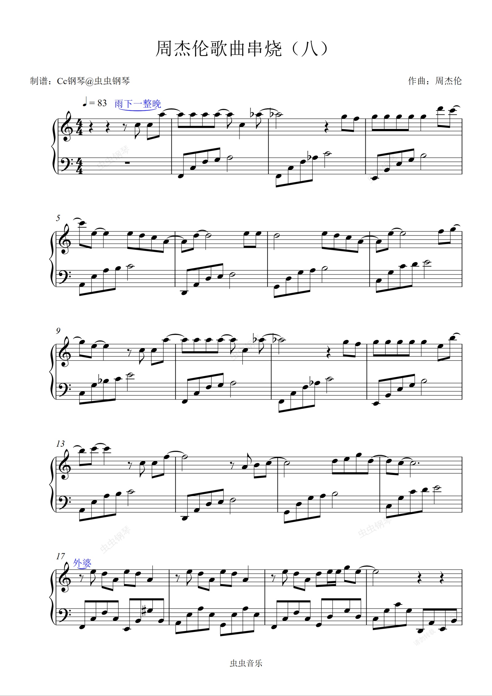 钢琴谱:周杰伦歌曲串烧(八)C调 好听易上手