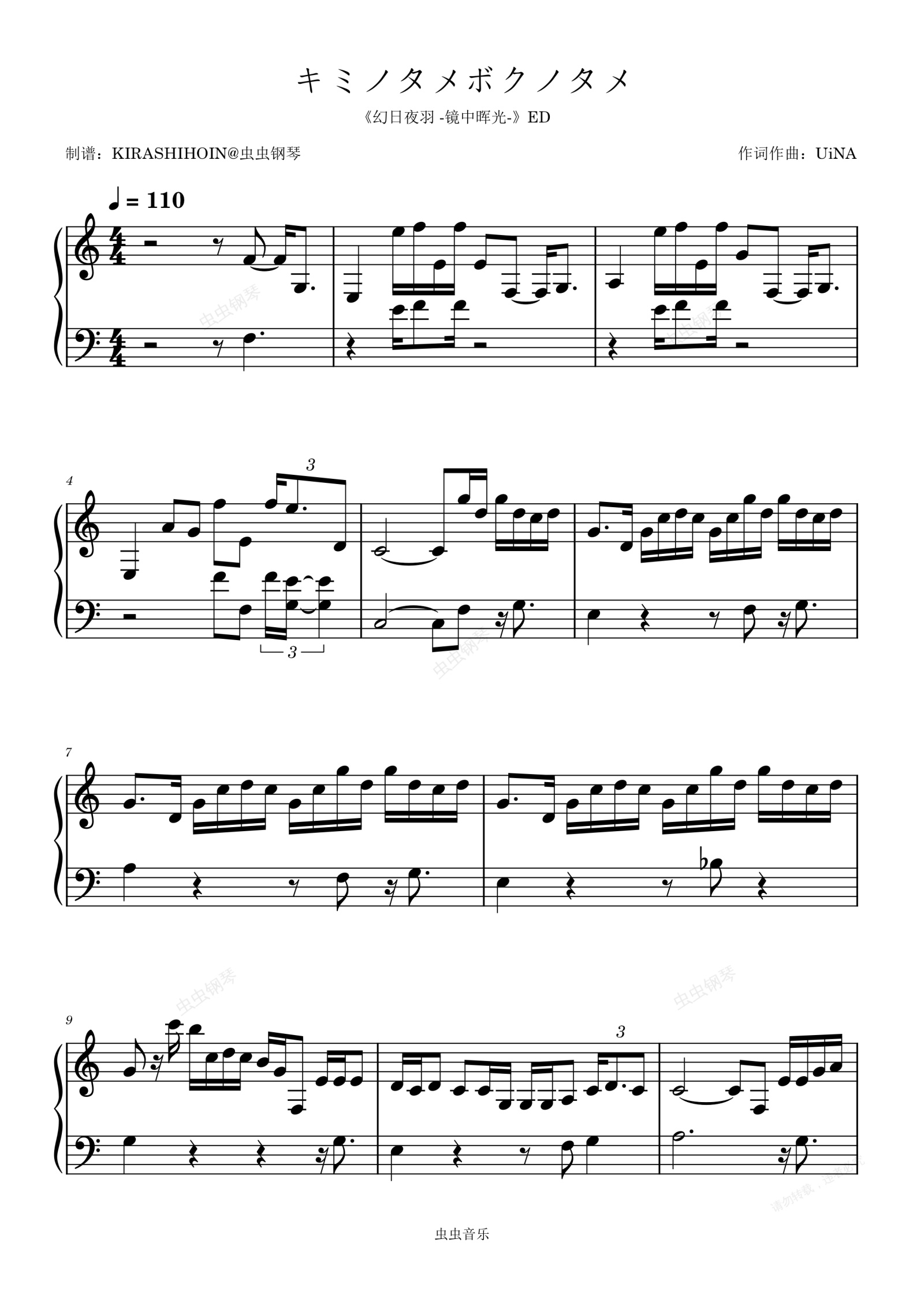 钢琴谱:キミノタメボクノタメ(《幻日夜羽 -镜中晖光-》ED/片尾曲)- Aqours