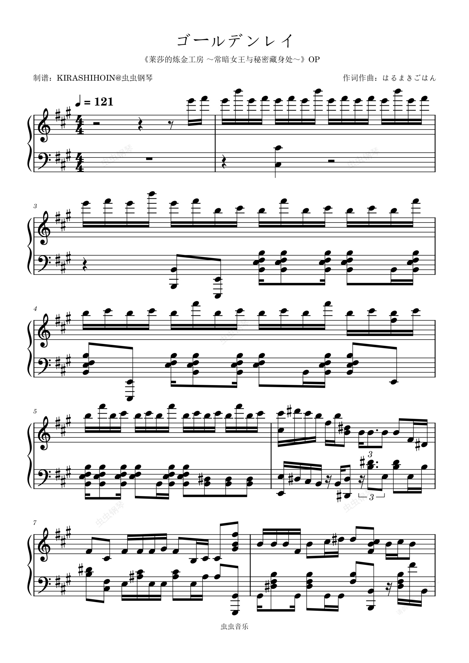 钢琴谱:ゴールデンレイ(《莱莎的炼金工房 ~常暗女王与秘密藏身处~》OP/片头曲)- 三月のパンタシア