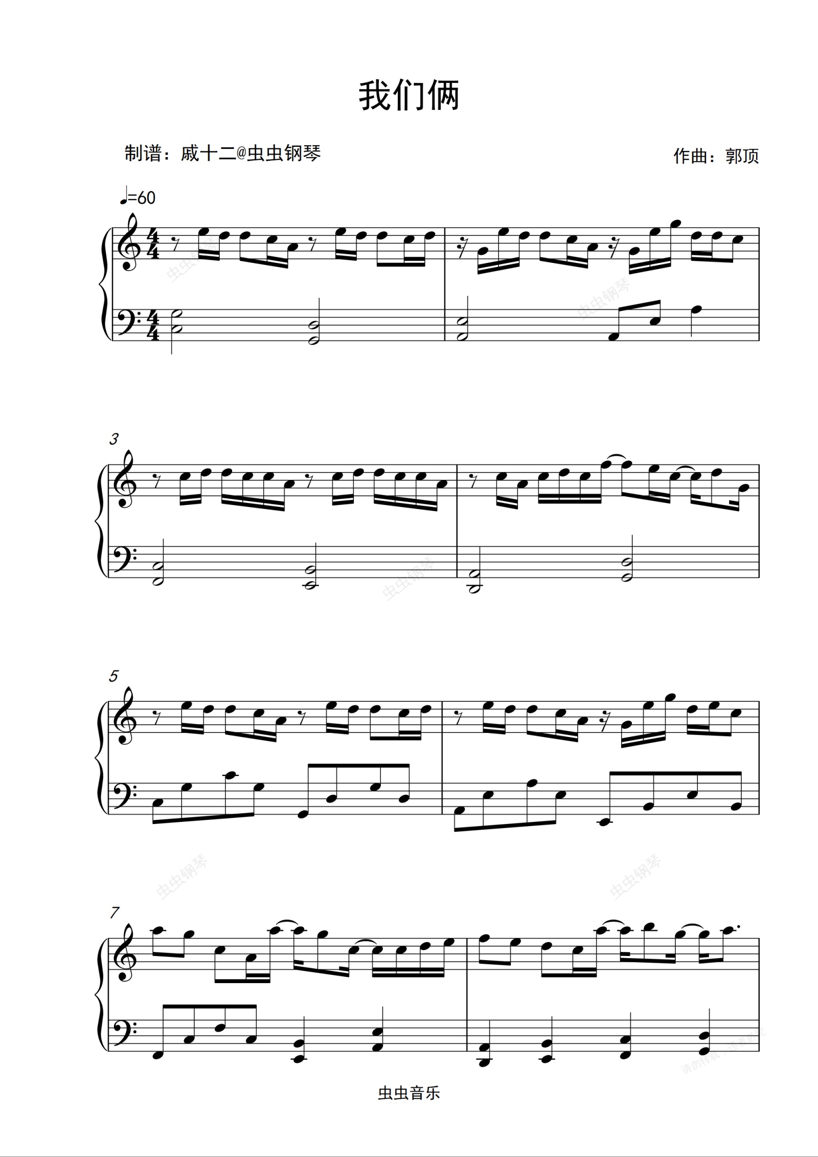 钢琴谱:我们俩-C调简单版