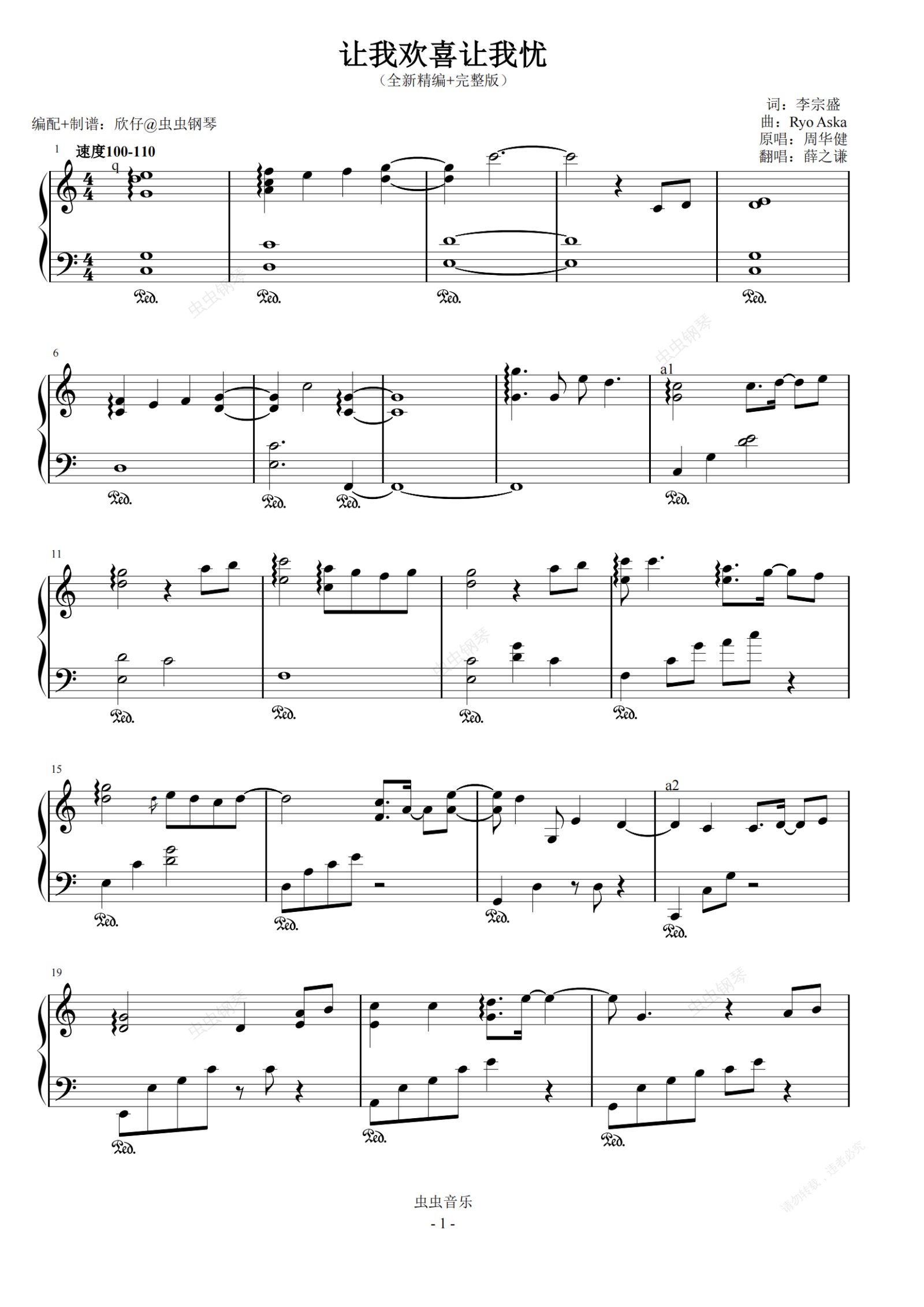 钢琴谱:薛之谦-C《让我欢喜让我忧》(全新精编+完整版)