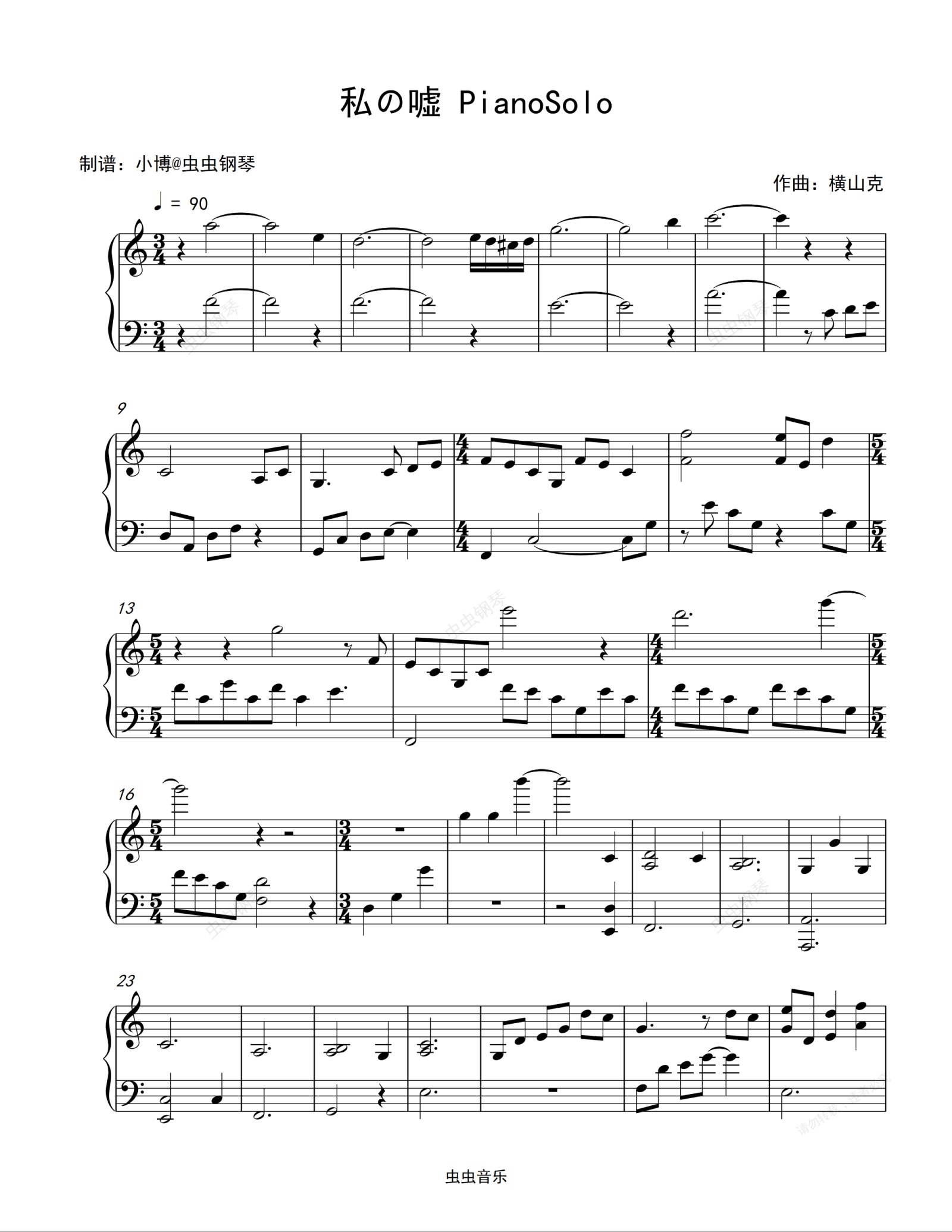 钢琴谱:私の嘘 PianoSolo-四月是你的谎言OST-横山克